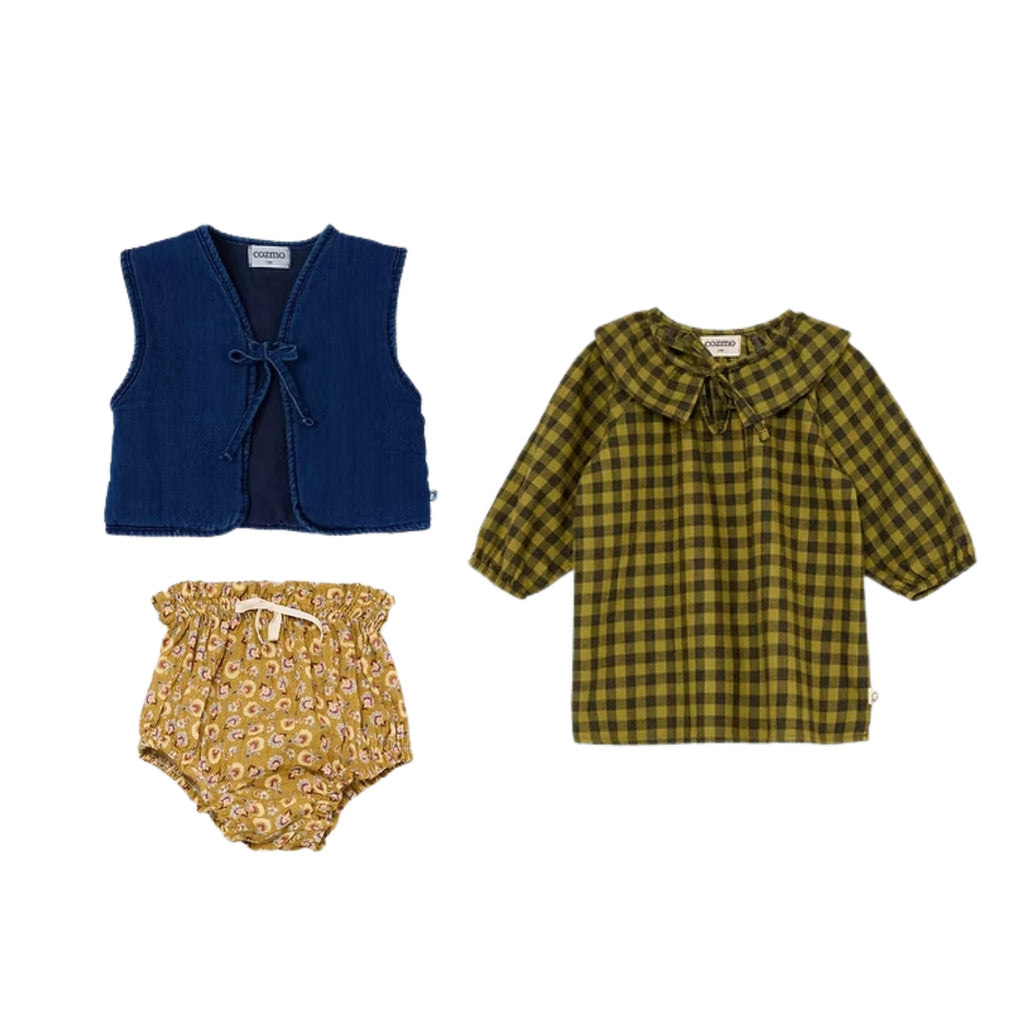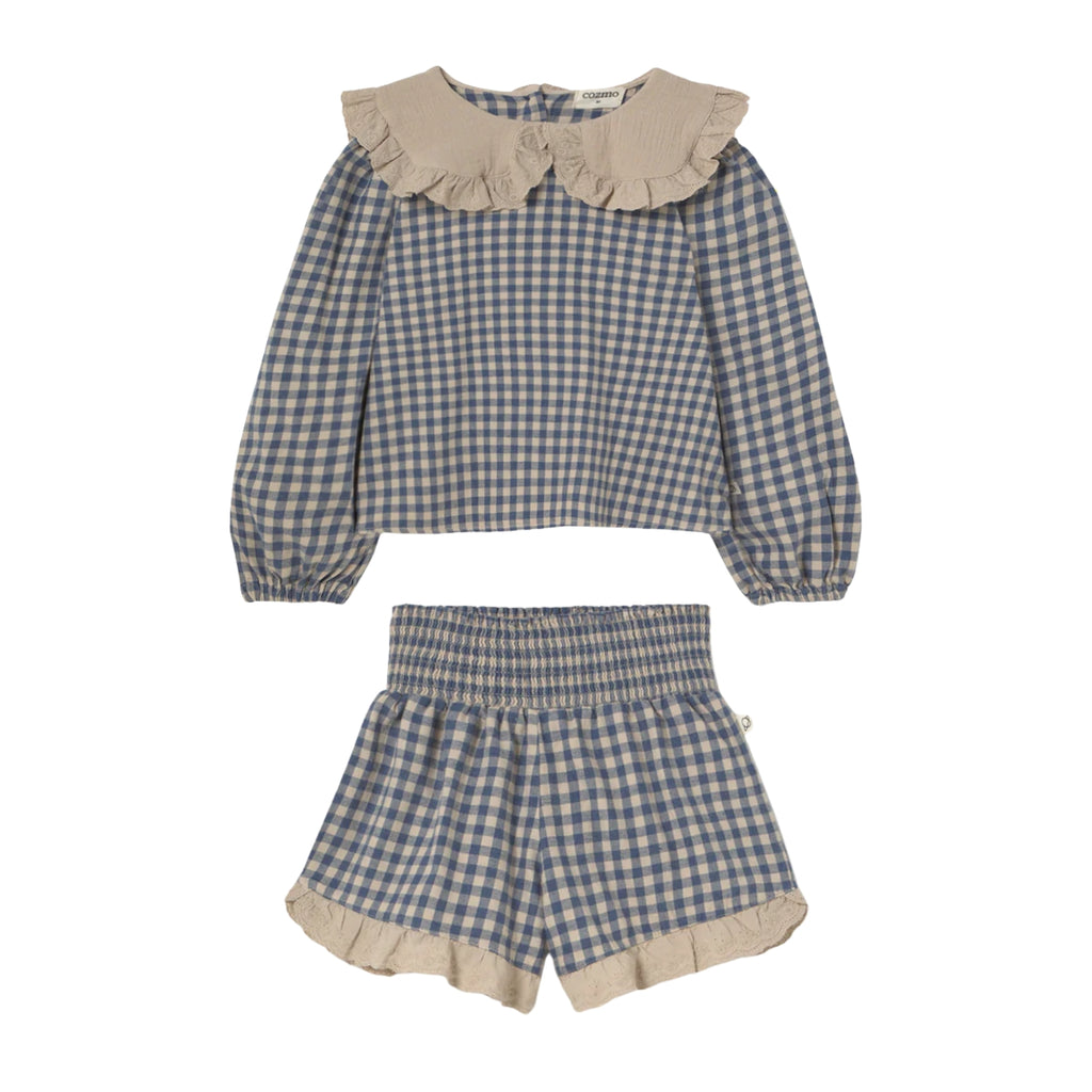 Belen gingham cotton flannel blouse & shorts | Stone Blue