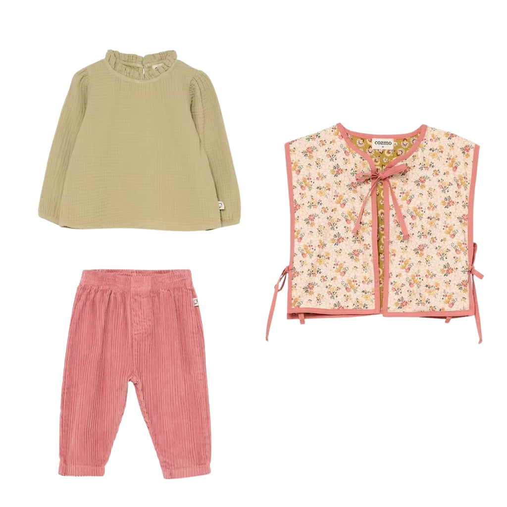 Baby Floral Vest & Muslin Ruffle Top & Pink Corduroy Pants