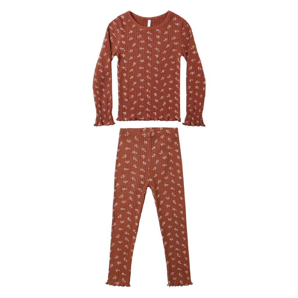 Floral Ribbed L/Sleeve Top & Leggings | Rust
