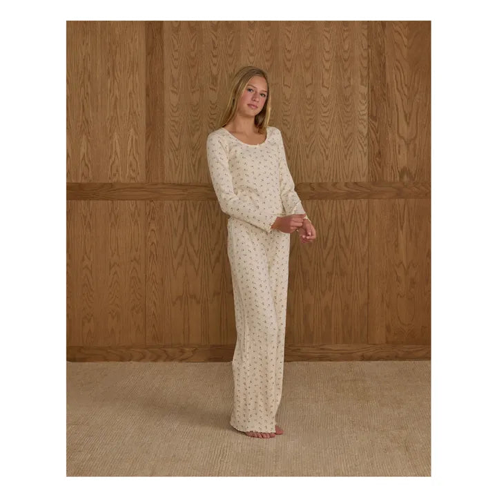 Teen - Floral Ribbed L/Sleeve Top & Wide Pants | Ecru
