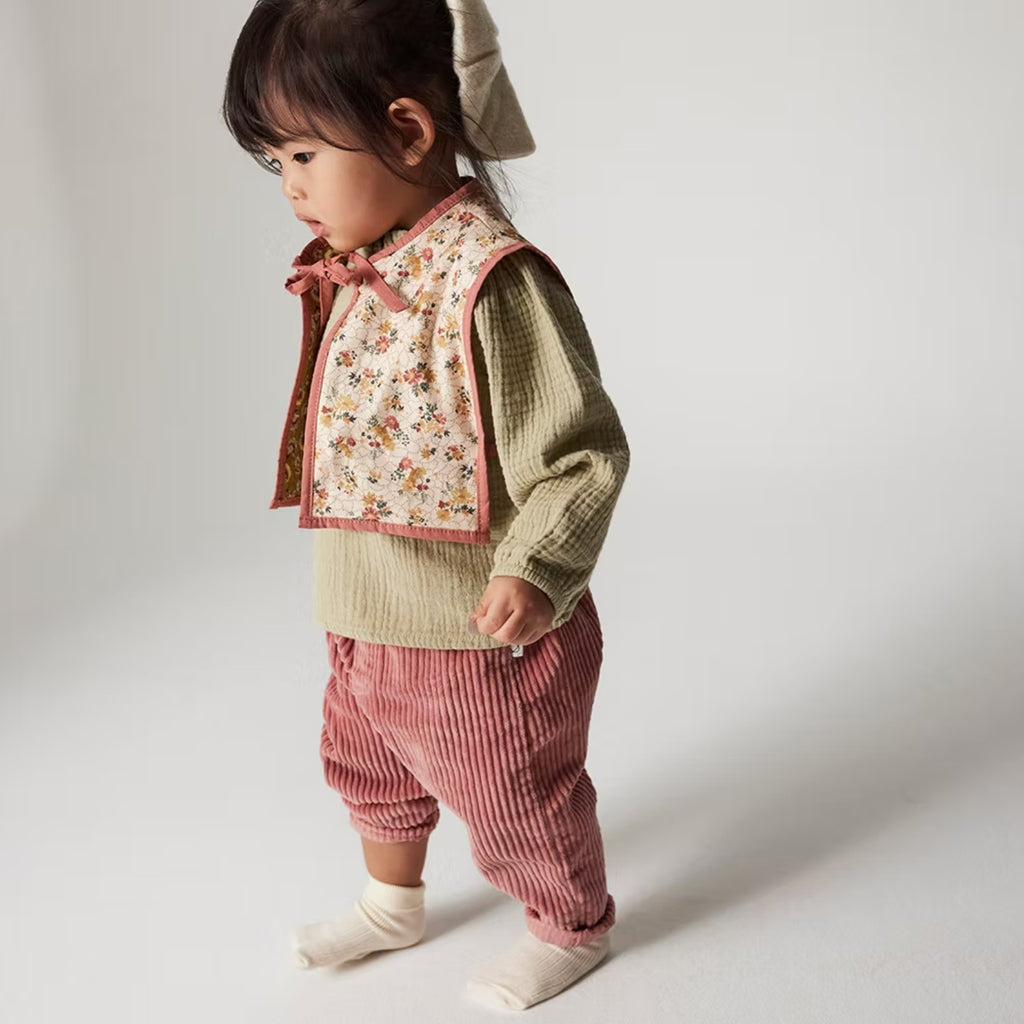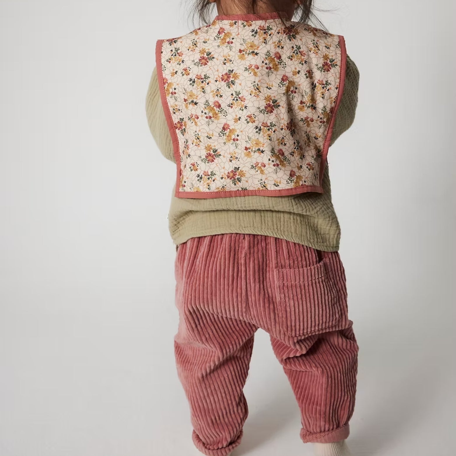 Baby Floral Vest & Muslin Ruffle Top & Pink Corduroy Pants