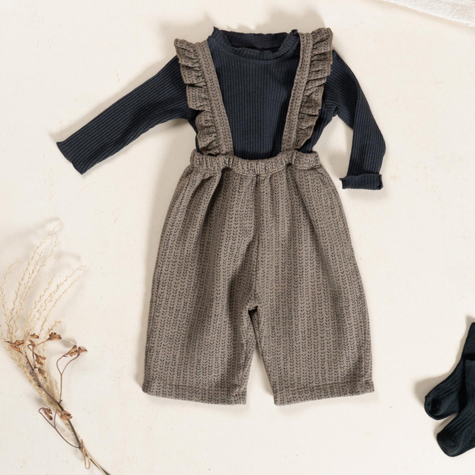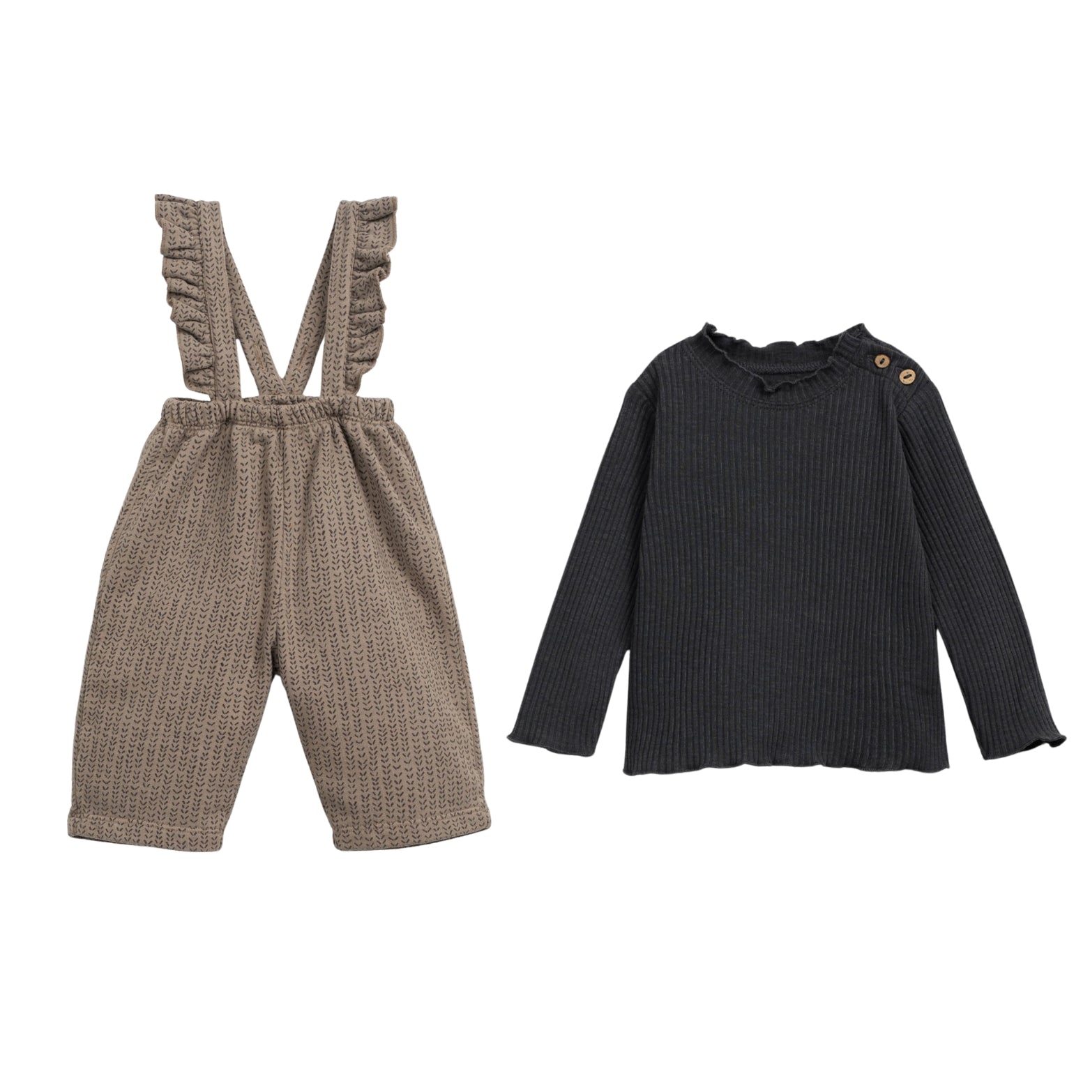 Black Ribbed L/Sleeves & Brown Spine Print Fleece Jumpsuit