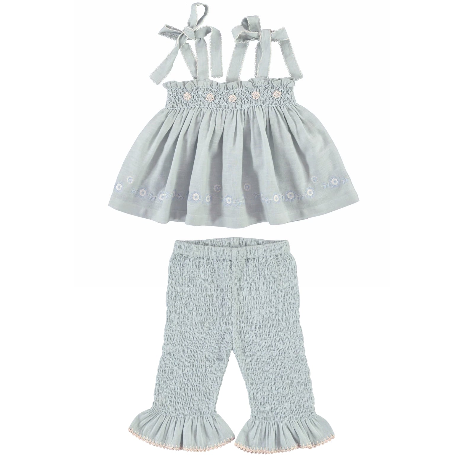 Floral Smocked Top & Bermuda Shorts | Cloudy Blue