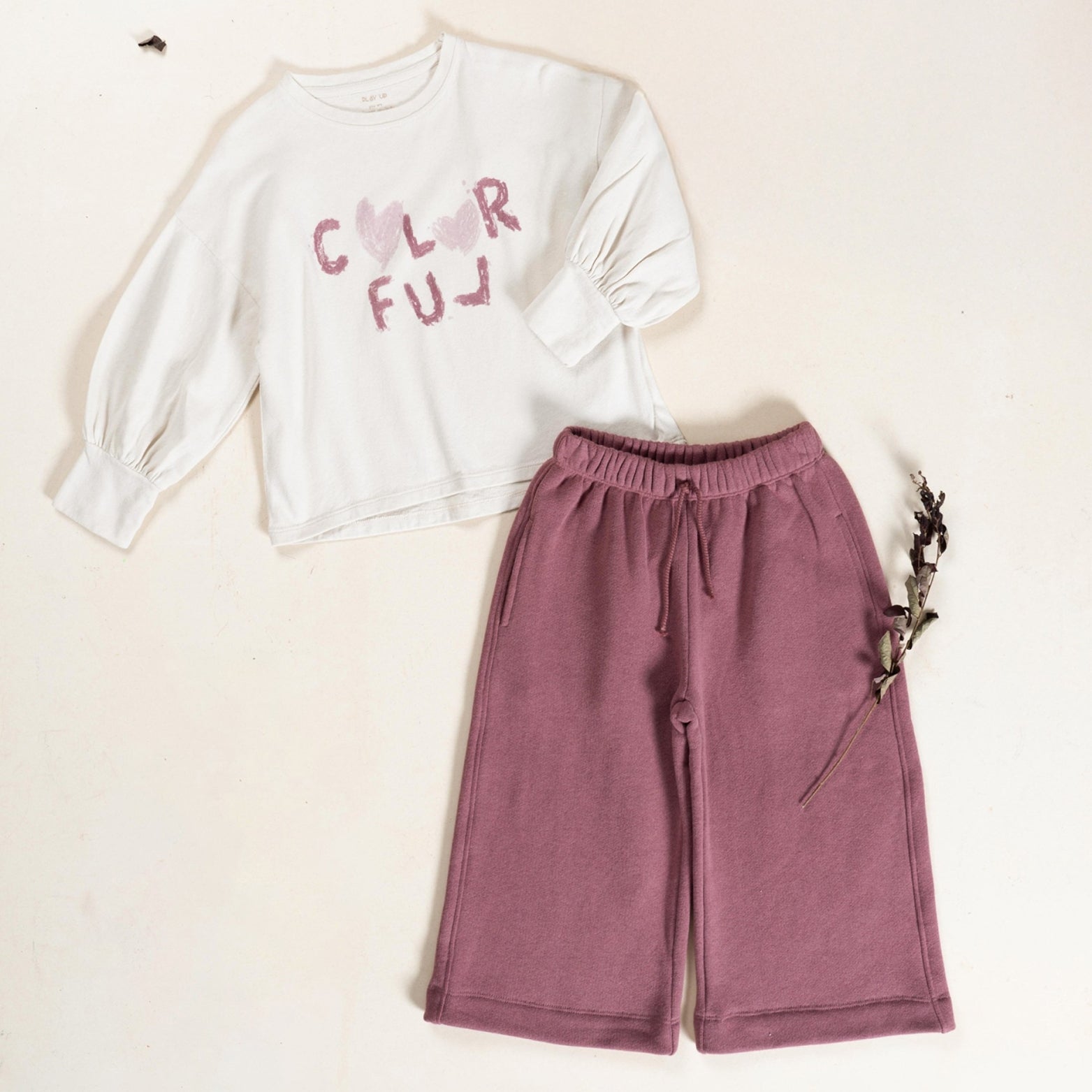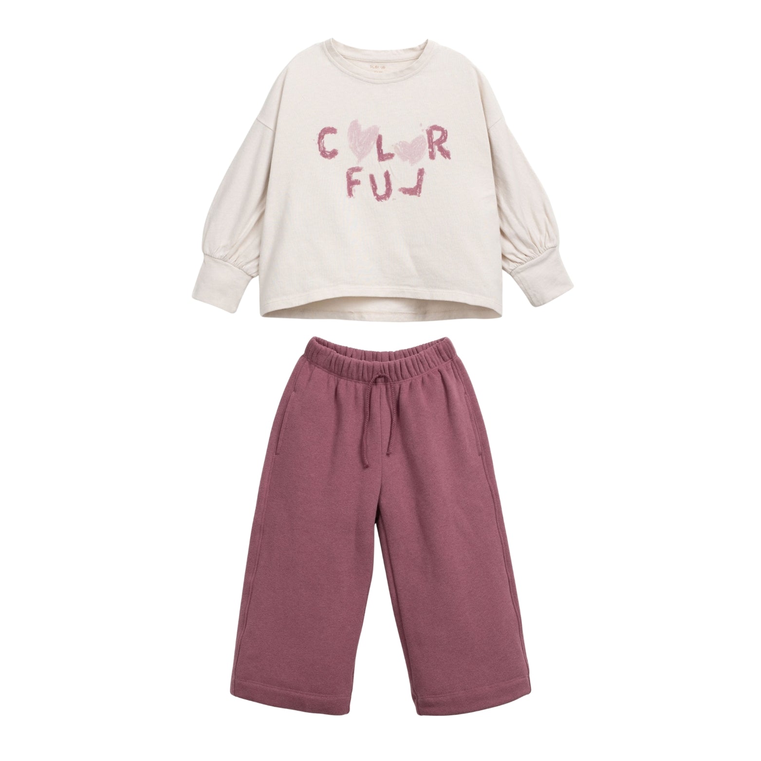Long Sleeves Printed Jersey Top & Berry Fleece Sweatpants
