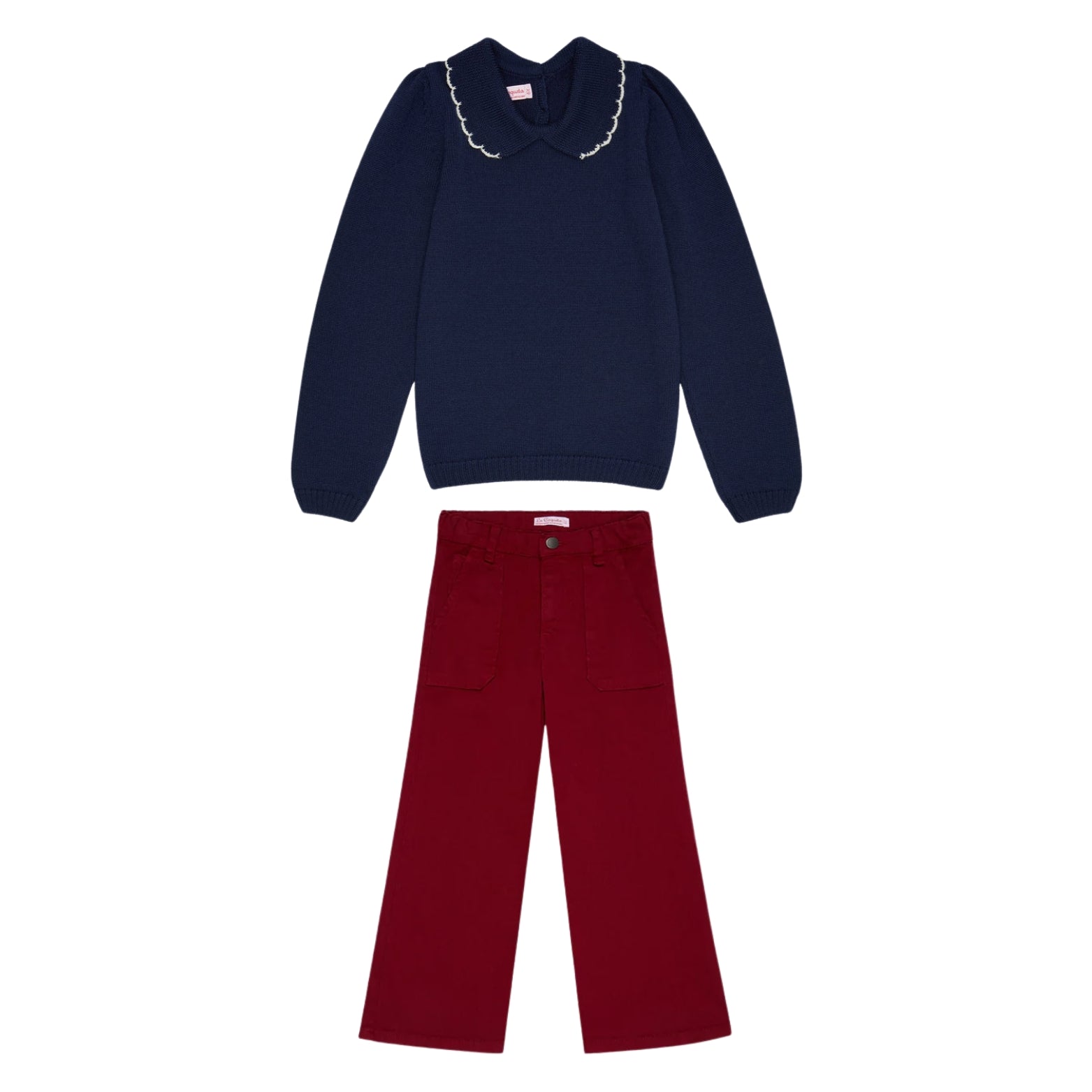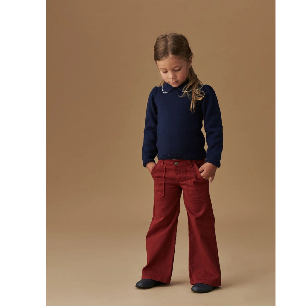 Navy Diana Merino Wool Jumper & Burgundy Wide Leg Jeans
