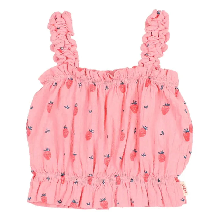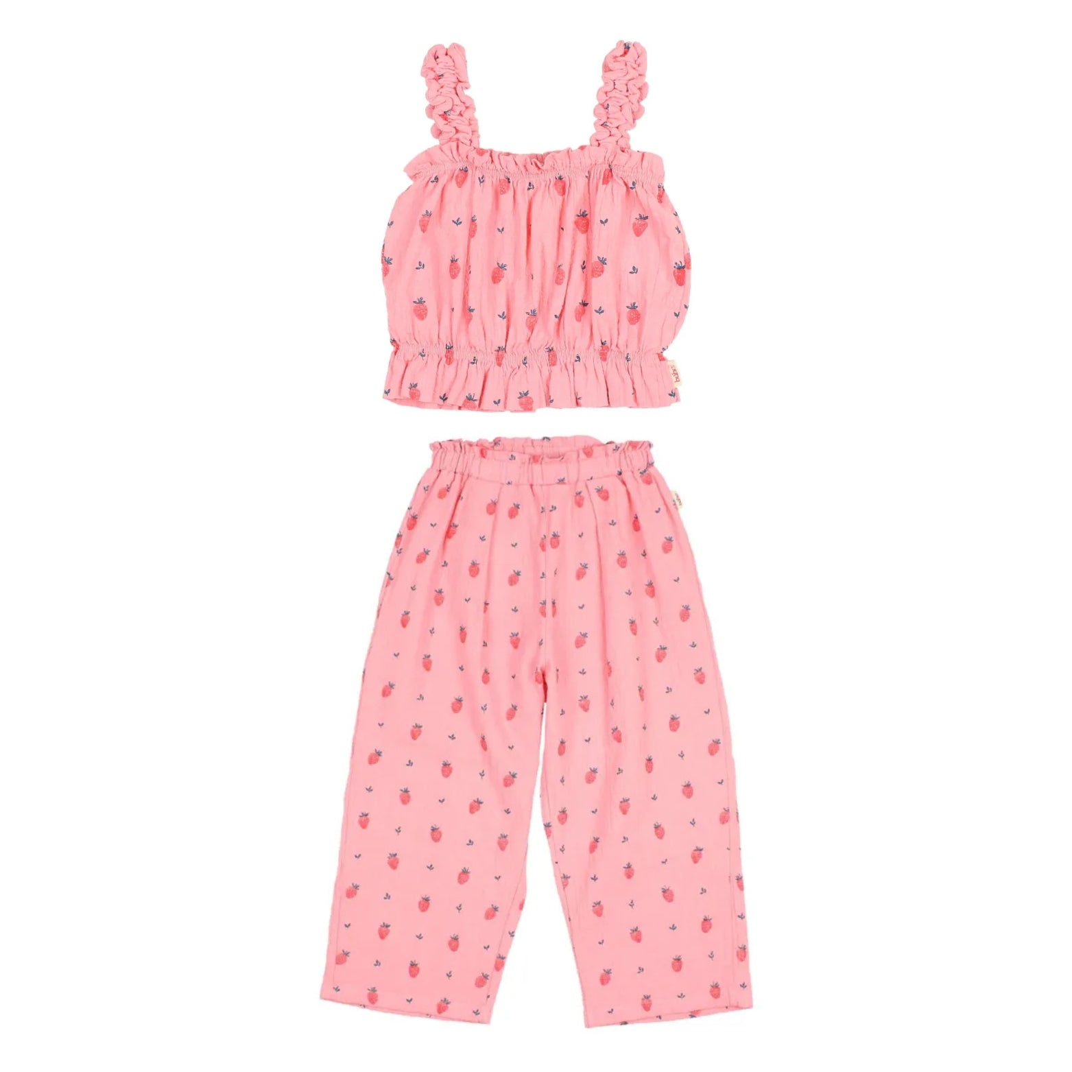 Organic Cotton Strawberry Ruffle Crop Top & Pants | Candy pink