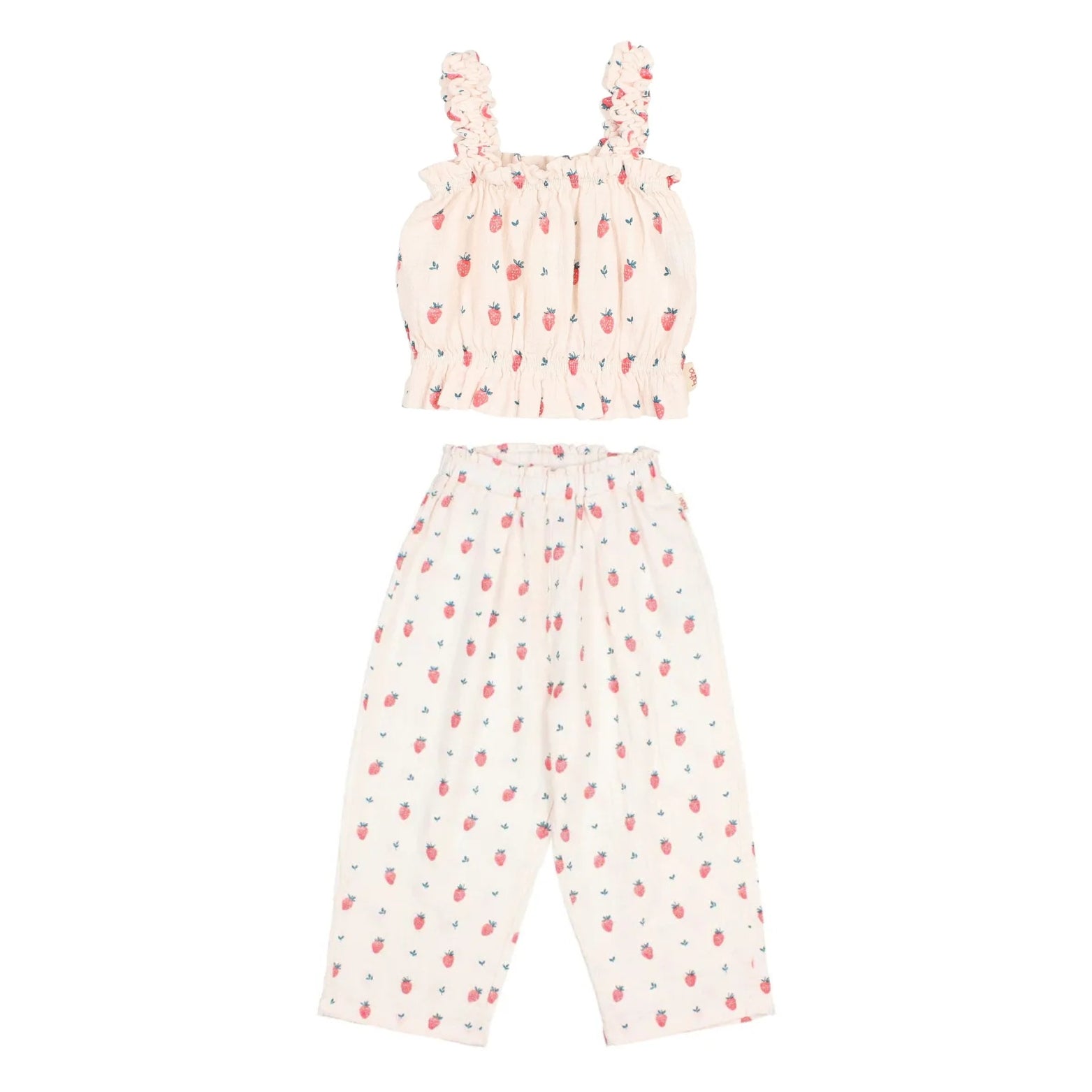 Organic Cotton Strawberry Ruffle Crop Top & Pants | Cream