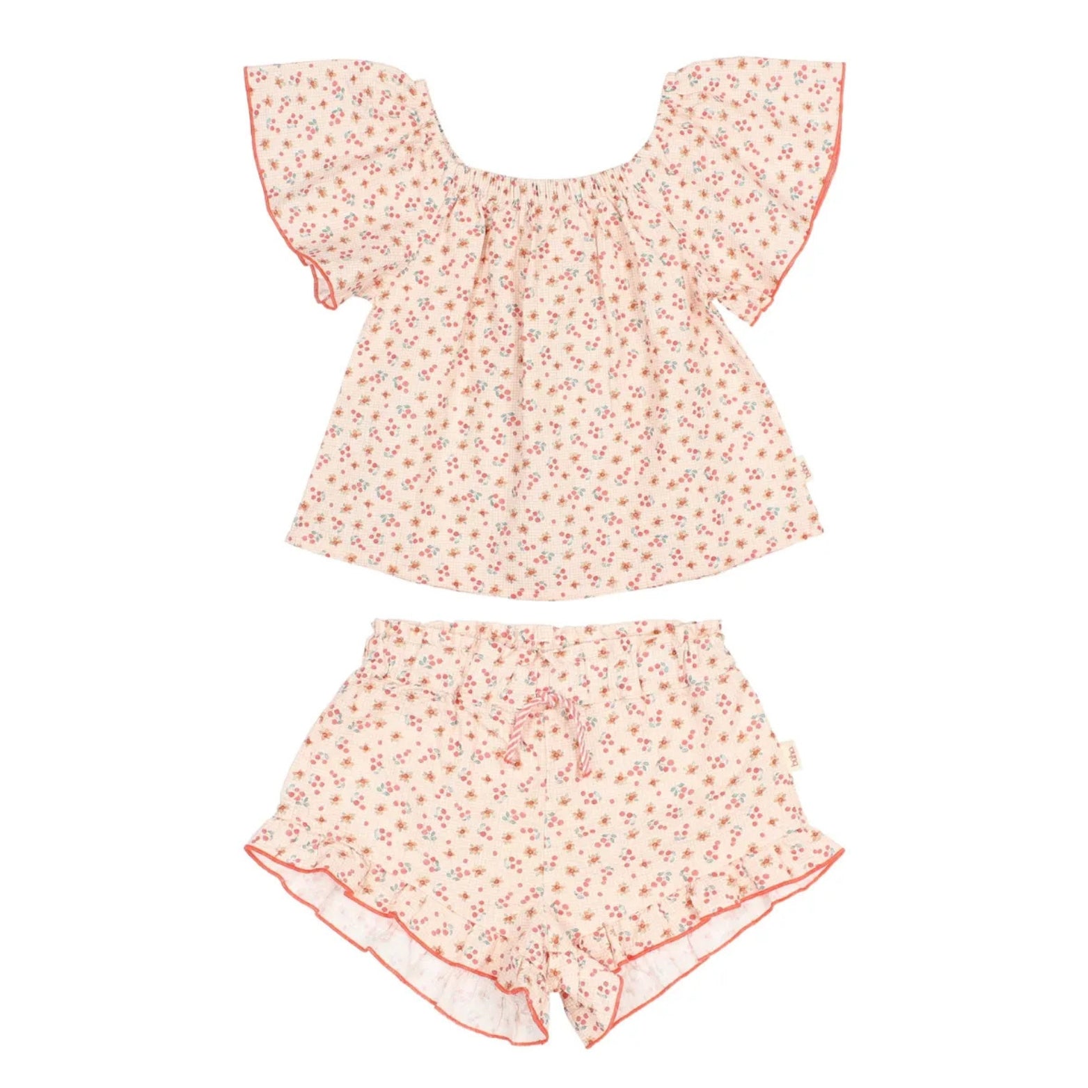 Seersucker floral blouse & Shorts | Peach - 3Y is backordered and will ship as soon as it is back in stock.