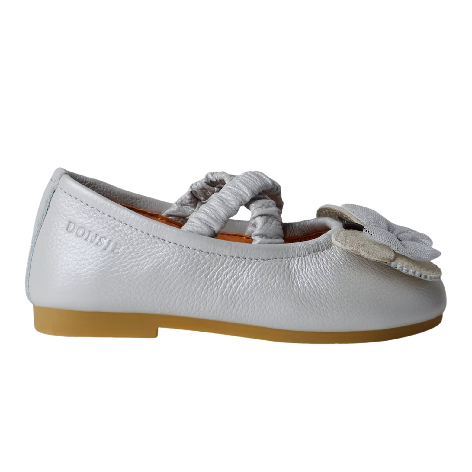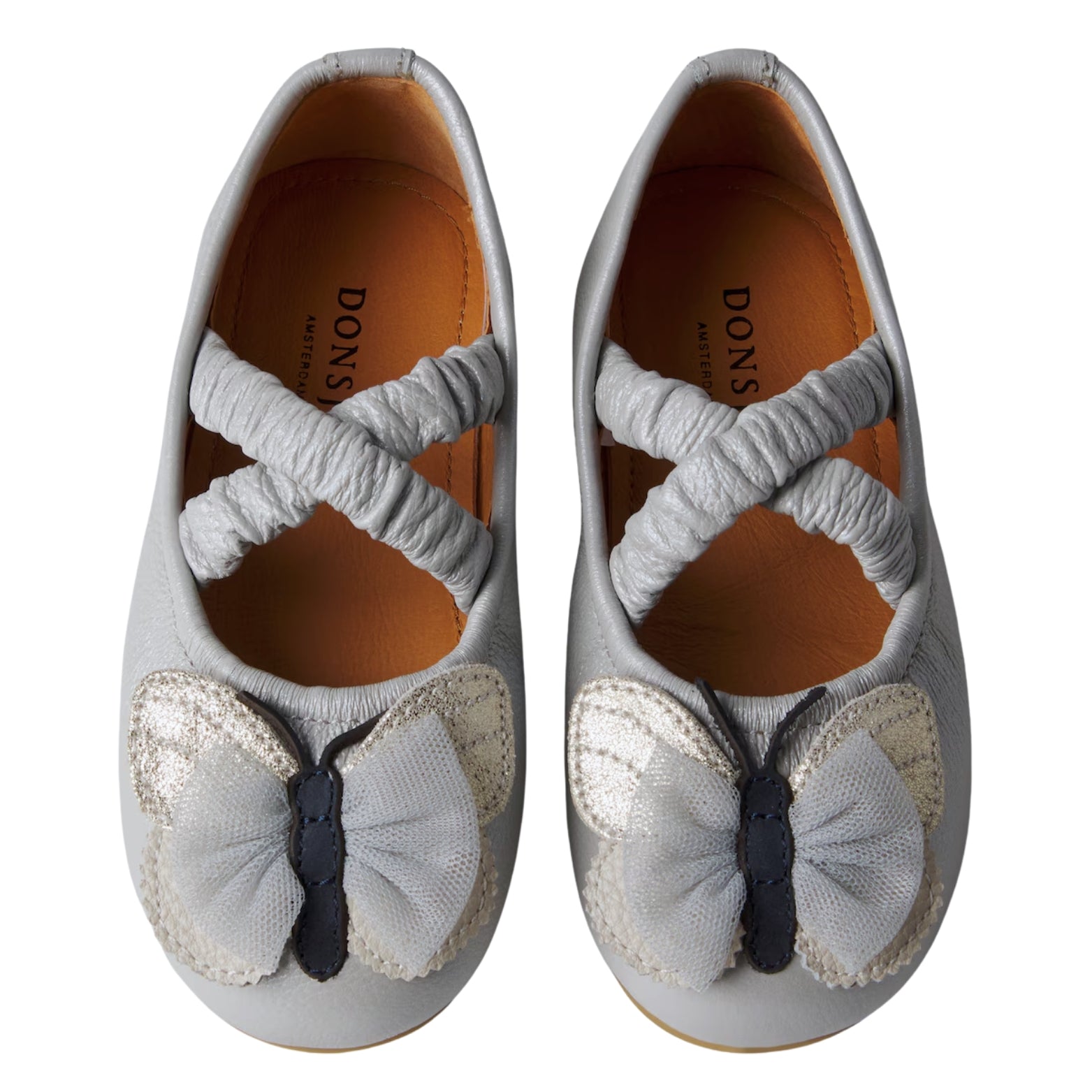 All Donsje designs are handmade using carefully handpicked materials to ensure the highest quality and durability. The leather ballet flats are designed with crossed elasticated straps and butterfly-shaped patch appliques.