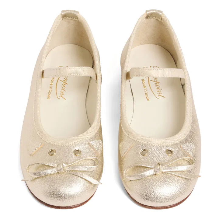 - These ballerinas combine elegance and originality. Made of leather, they feature a bow, metal eyelets and little ears on the toe, forming a cat's head.