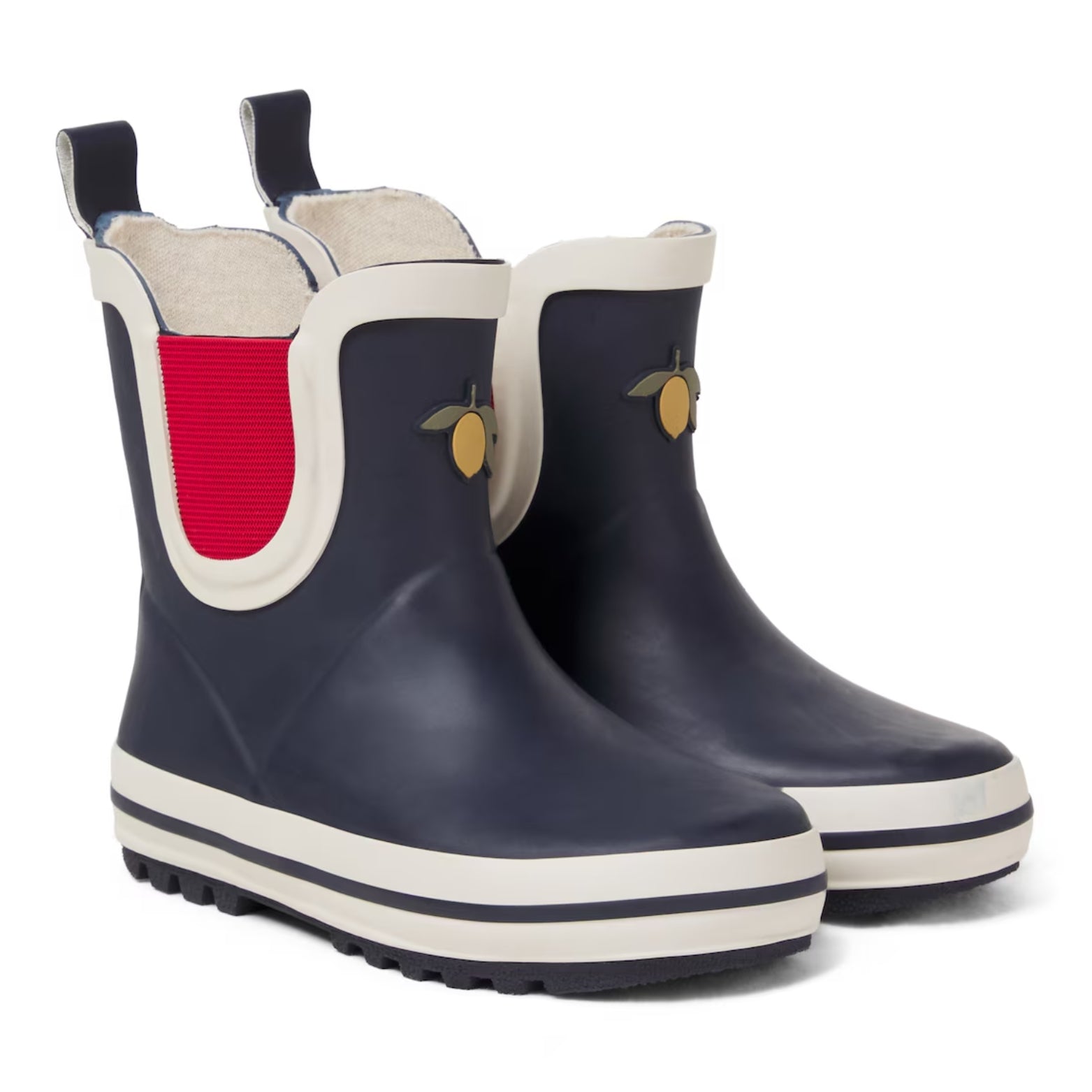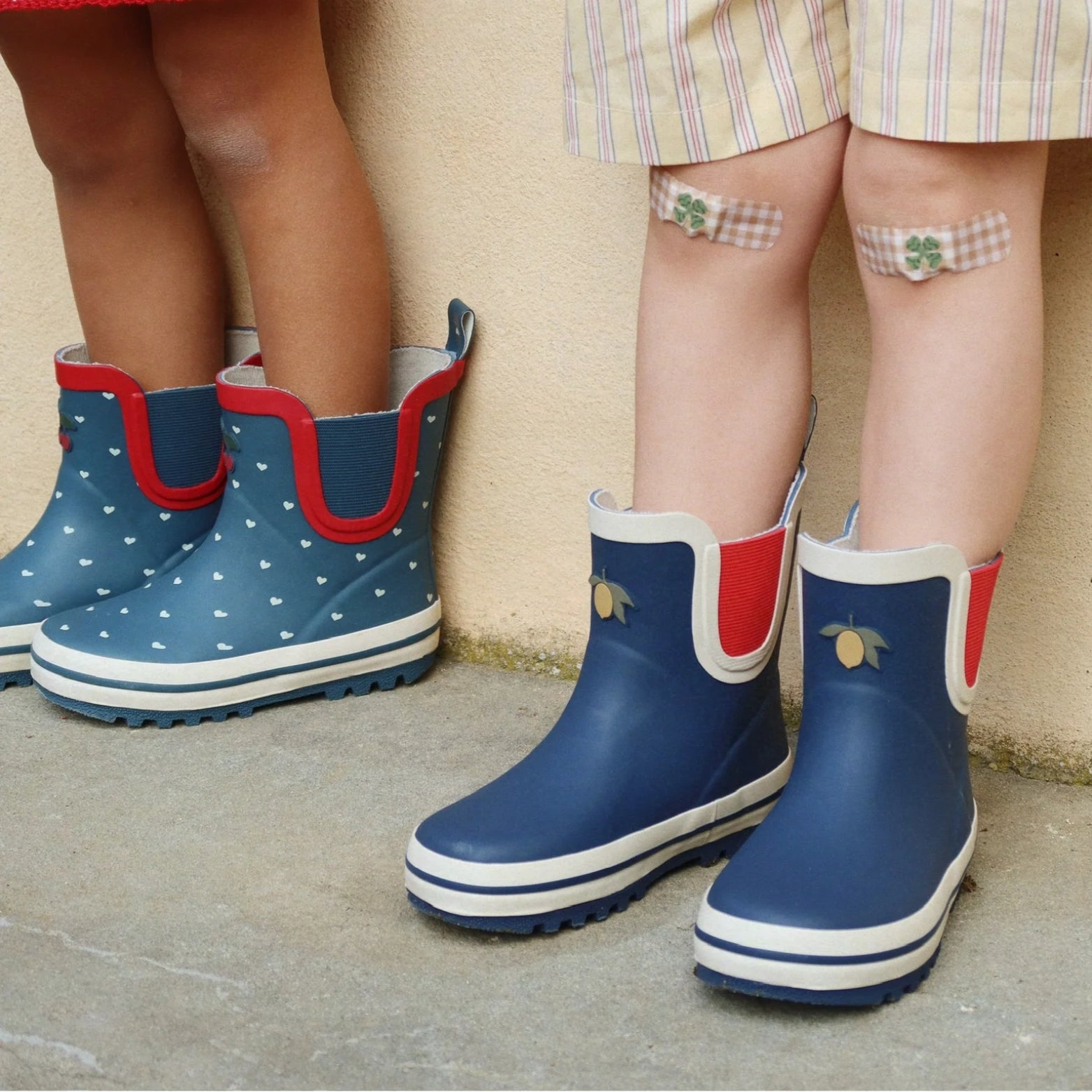 Bring some fun to gloomy days with the Roi rain boots from Konges Sløjd. Comfy and playful, the blue pair features sweet lemon motifs on a colorblocked base and elasticated side panels.