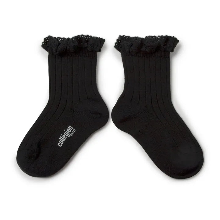Lili Lace Trim Ribbed Ankle Socks | Black - 18/21 EU is backordered and will ship as soon as it is back in stock.