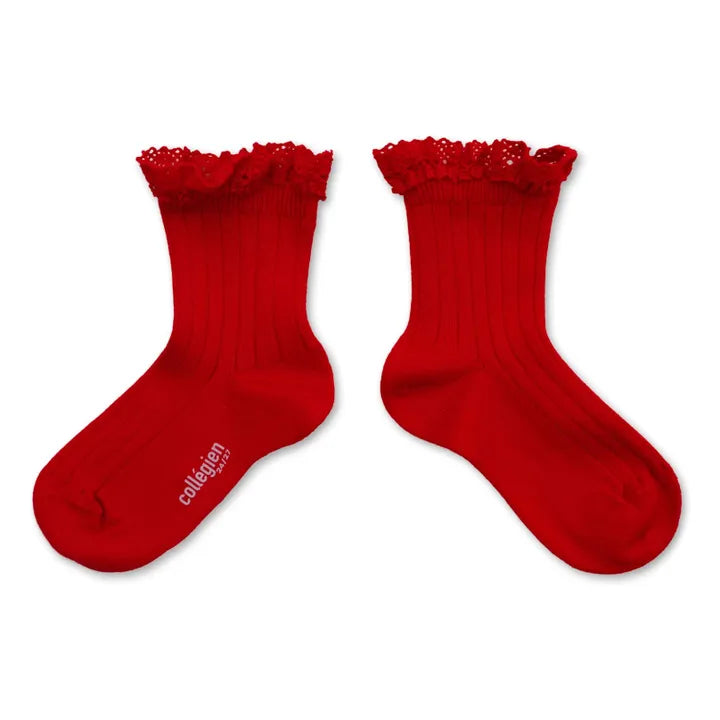 Lili Lace Trim Ribbed Ankle Socks | Red - 21/23 EU is backordered and will ship as soon as it is back in stock.