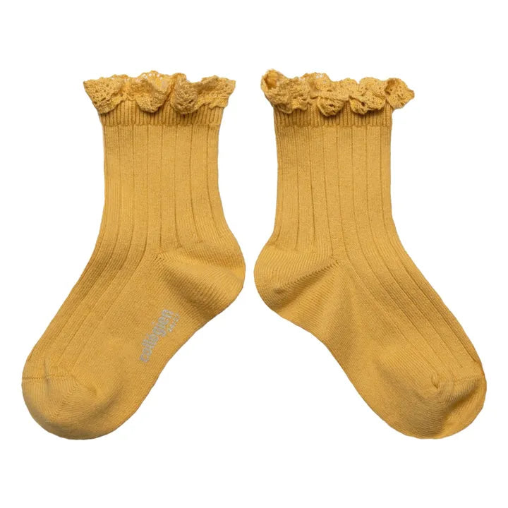 Lili Lace Trim Ribbed Ankle Socks | Sunflower