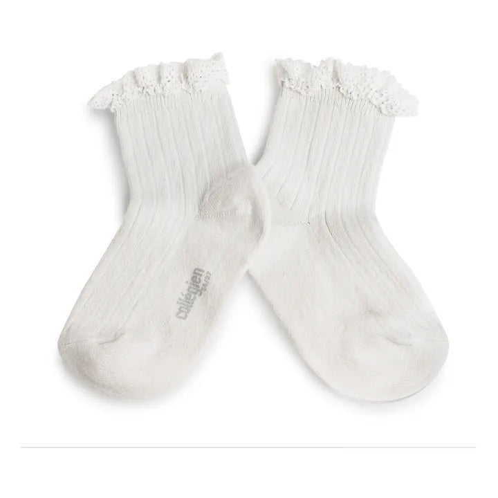 Lili Lace Trim Ribbed Ankle Socks | White - 18/21 EU is backordered and will ship as soon as it is back in stock.