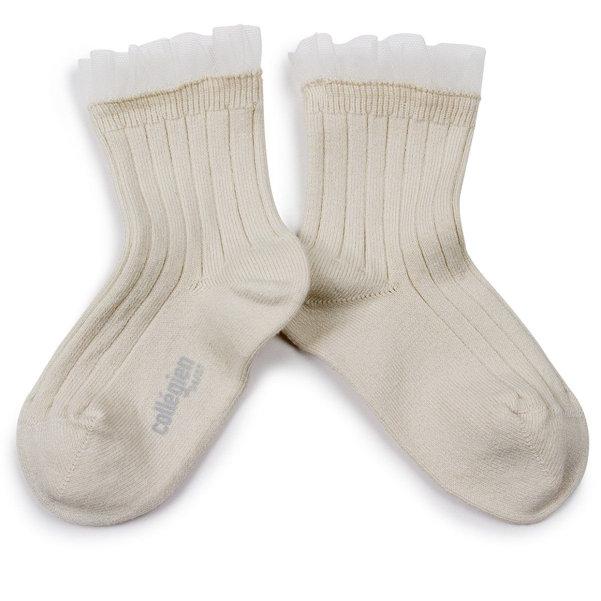 Margaux Tulle Frill Ribbed Ankle Socks | Doux Agneaux - 18/20 EU is backordered and will ship as soon as it is back in stock.