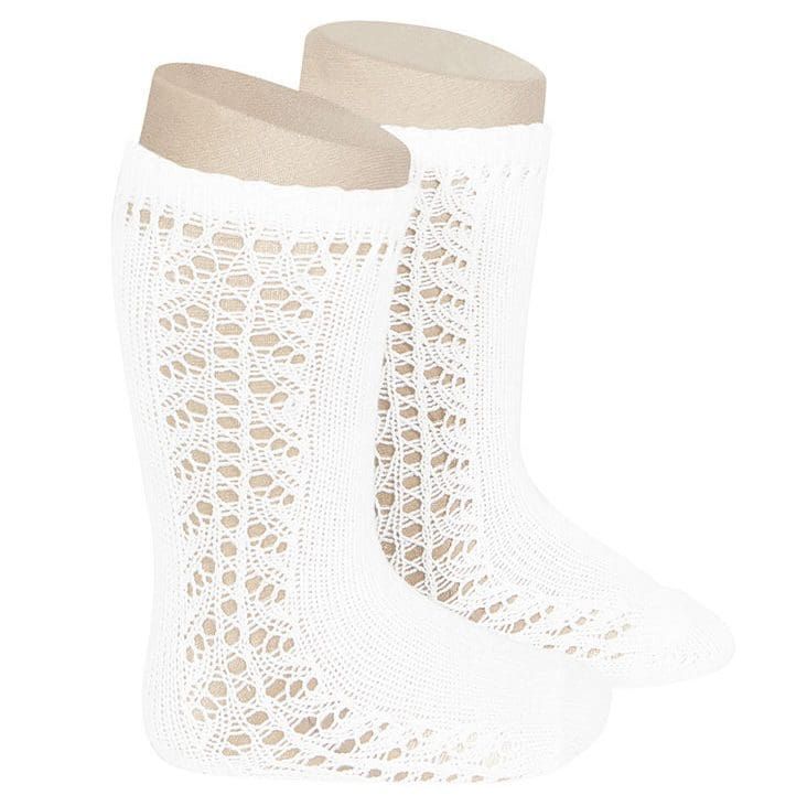Warm Cotton Knee Socks W/ Side Openwork | White 200