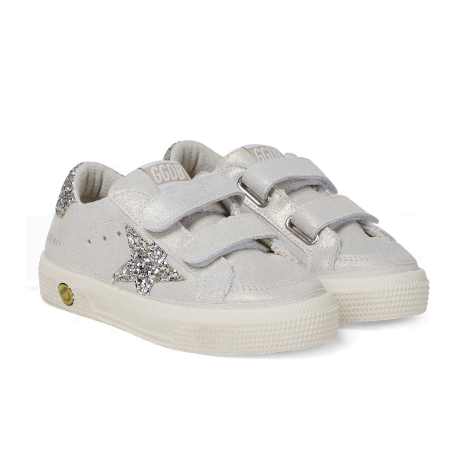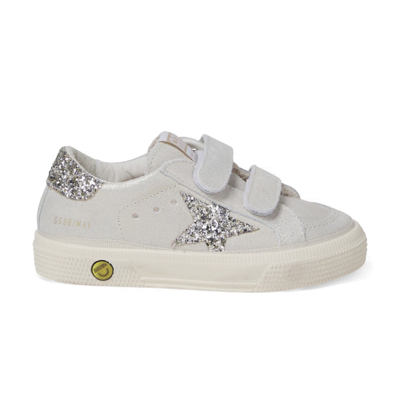 The May School sneakers are made from smooth leather with brand-signature glitter star appliqués. Golden Goose Kids' pre-scuffed detailing makes for fuss-free outdoor wear, while VELCRO® straps make for the first steps towards independent dressing.