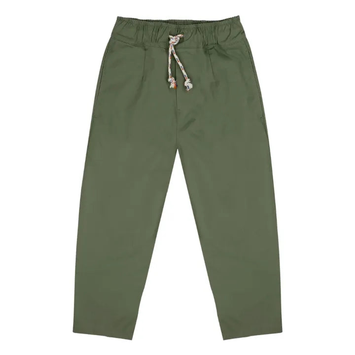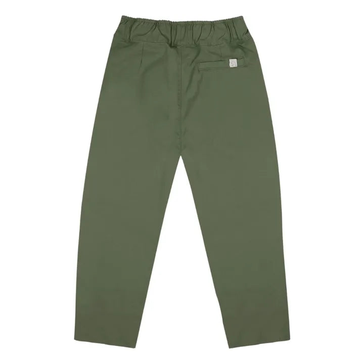 - These pants with elasticated waistband are made of organic cotton twill - Tapered fit Elasticated Waistband Front insert pockets Back welt pocket Strings to create perfect fit 80% Organic cotton 20% twill