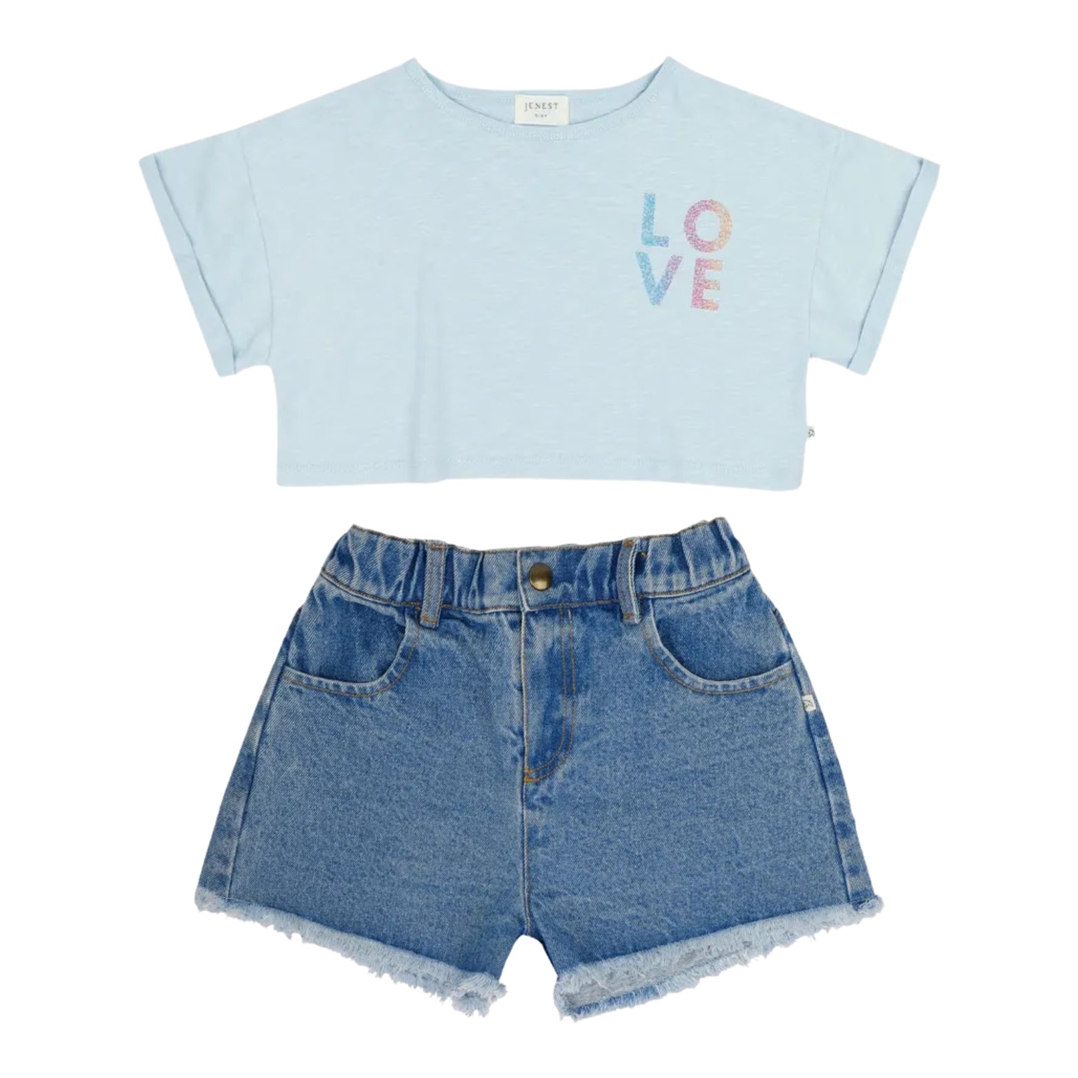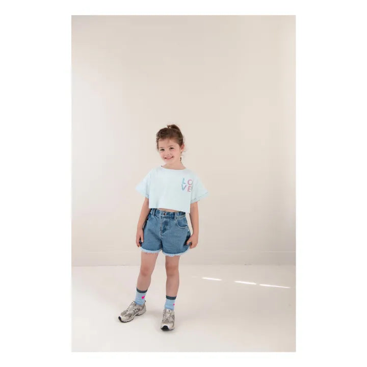 LOVE Crop T-shirt & Denim Shorts | Blue