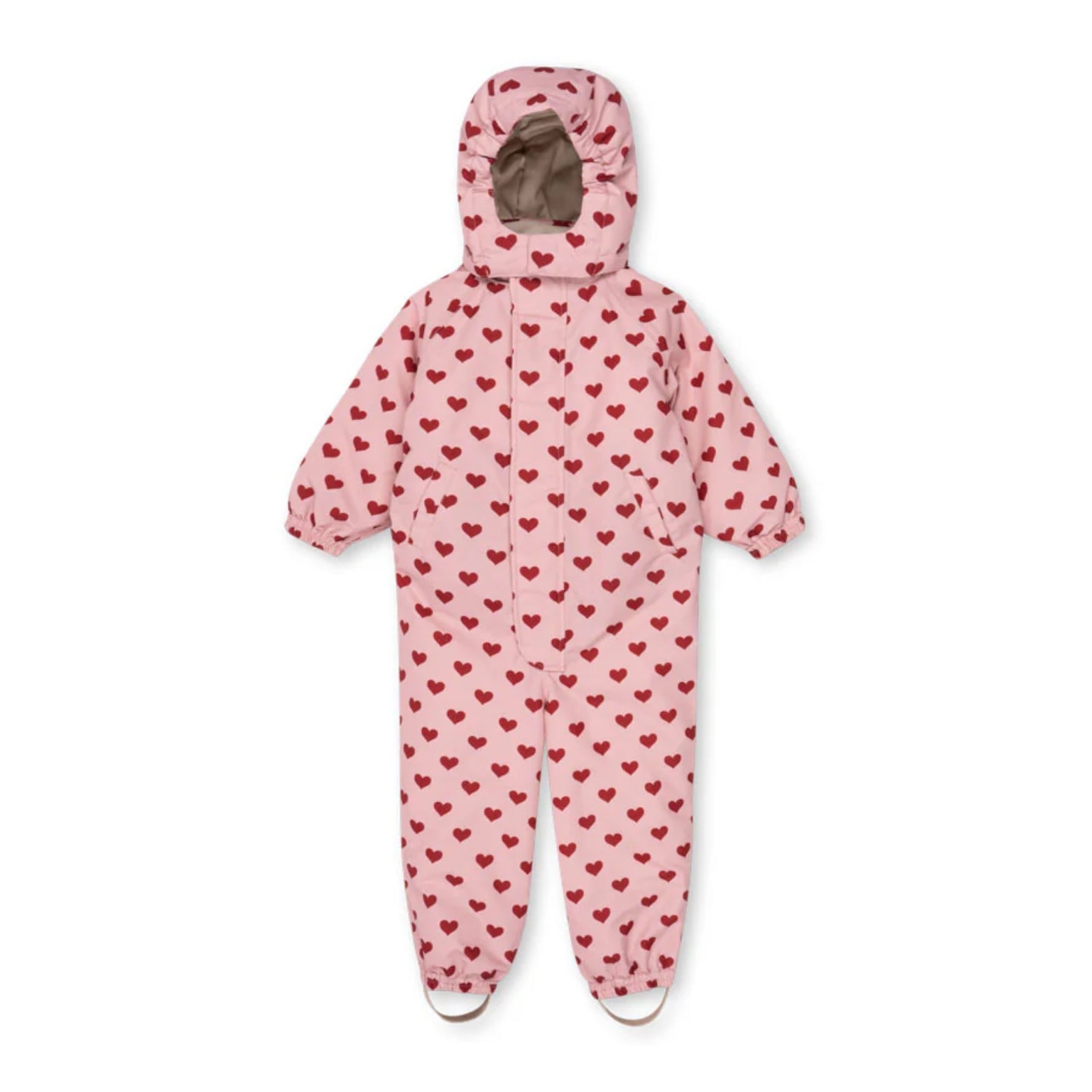 classic snowsuit in a warm yet breathable composition that is both wind-resistant and waterproof. Designed with hooks for gloves inside sleeve ends and a detachable hood.