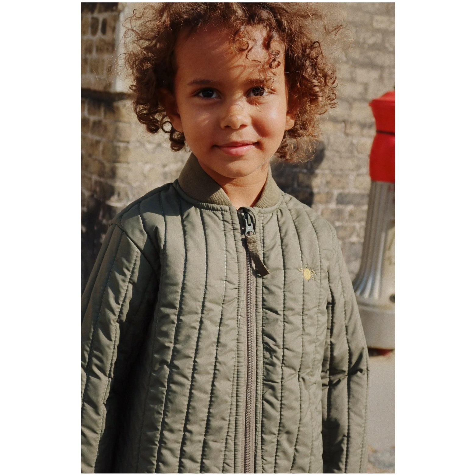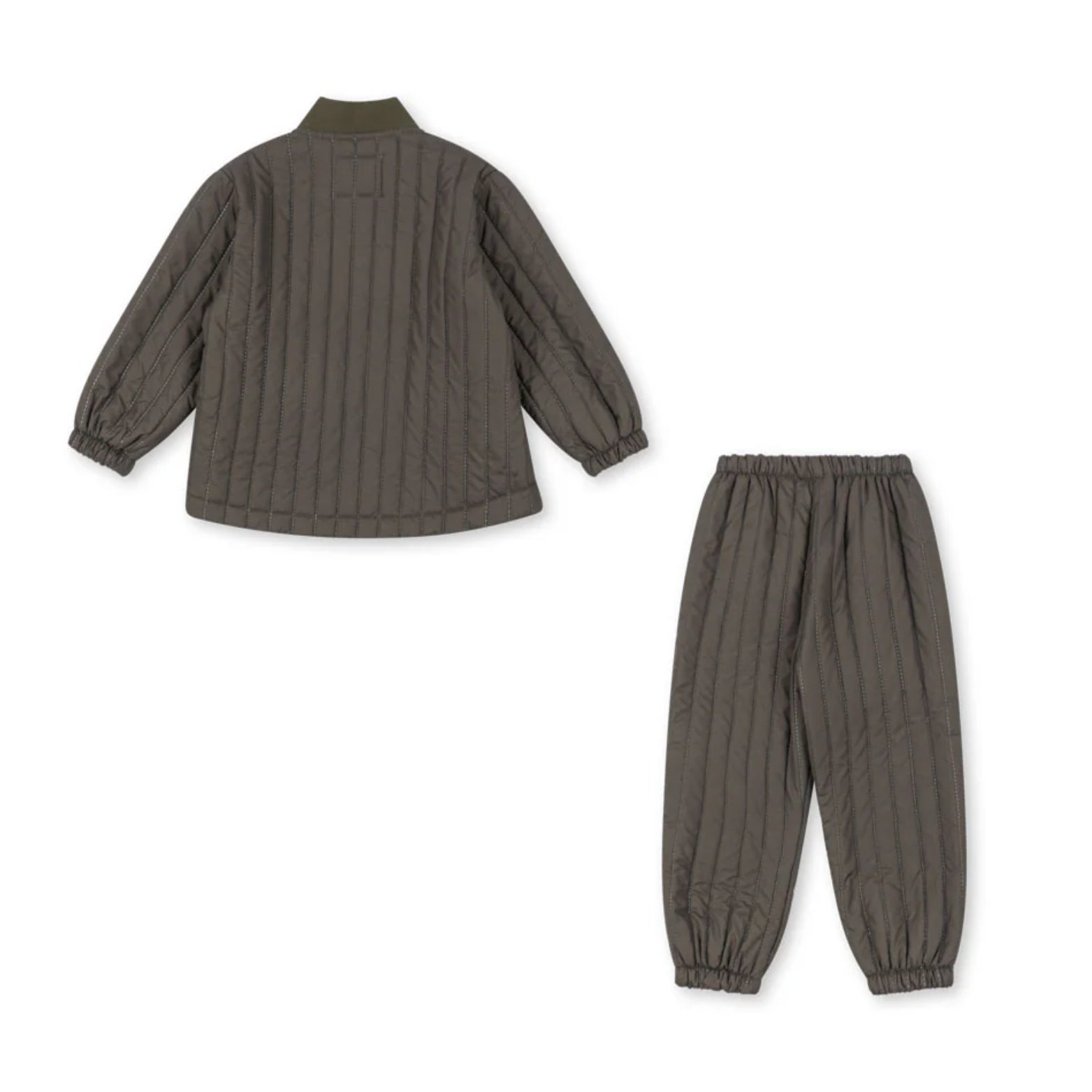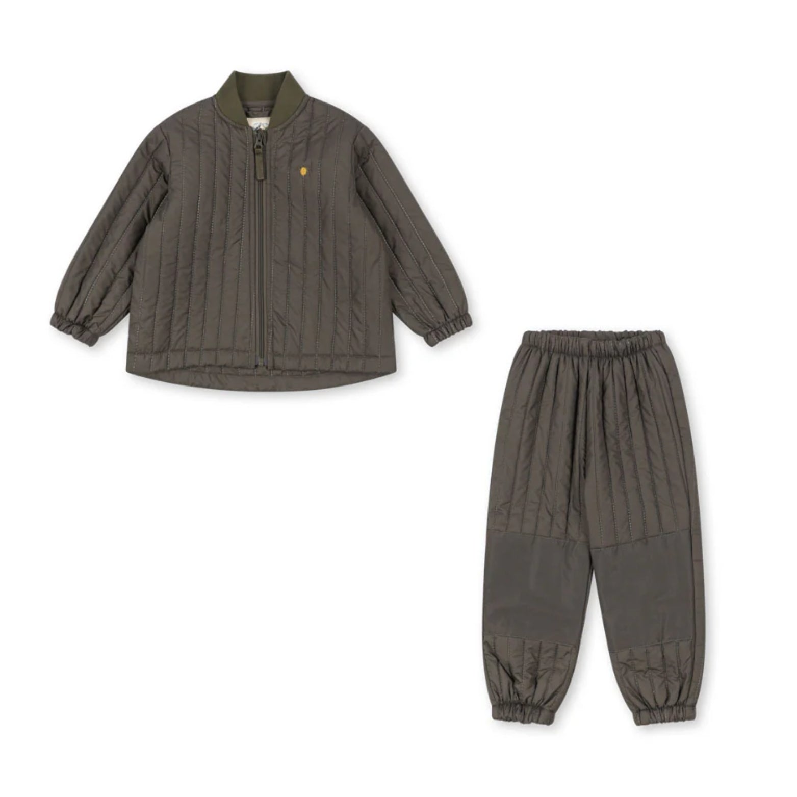 Soft and practical set with thermo pants and a matching jacket in a lightweight and warm padded quality.