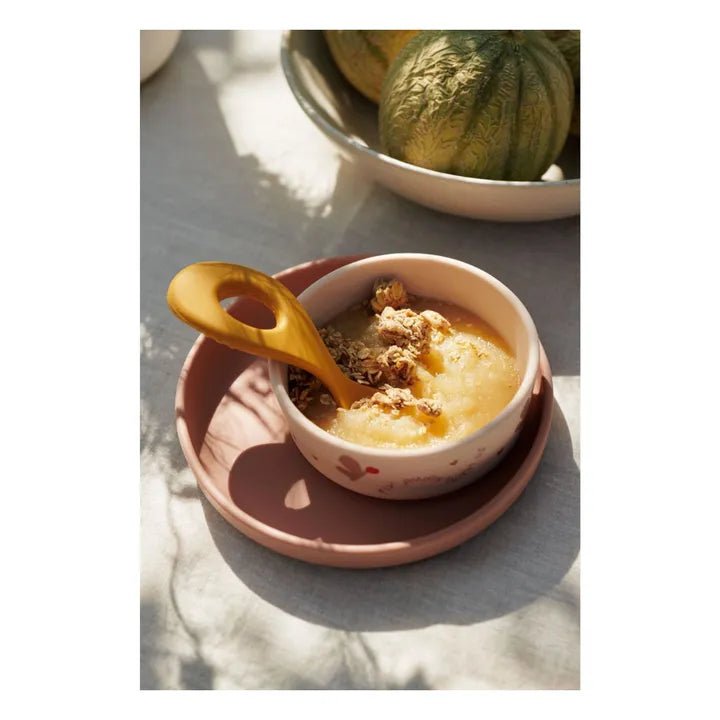 - All our most popular tableware — gathered in one convenient set. Made from durable, high-quality silicone, the tableware set is shatterproof and dishwasher-safe. It consists of an open cup, a bowl, a plate, and a spoon, ensuring your little one is ready for their food adventures.