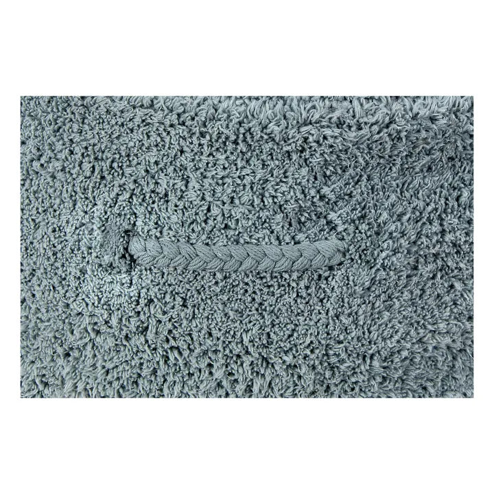 - Round pouf, in Vintage Blue base and a handmade braid in matching color as a handle. Top and sides covered with soft rug pile, bottom part in cotton canvas, and finished with a zipper. Inside removable filler with polystyrene pearls.