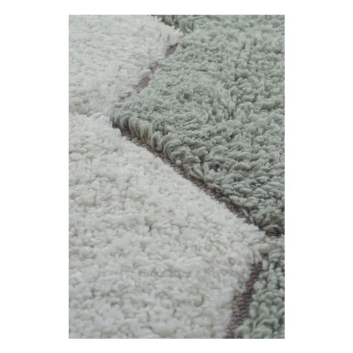 • Inspired by the geometric honeycomb pattern, the Round Honeycomb Blue Sage rug is made of soft tufted hexagonal color patches in shades of Ivory, Light blue and Blue Sage. The base canvas is slightly visible in between the color patches, giving a structured surface to the the rug.