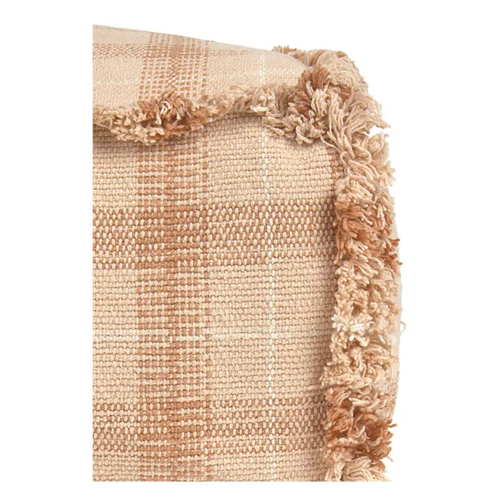 - A cozy tartan pouf, perfect for little dreamers! Hand-woven on traditional looms, this pouf features a classic tartan pattern in warm shades of pink and chestnut. Its soft bangs add a playful touch and extra texture. The perfect place to sit, play and brighten up your little one's space.