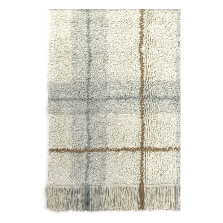 - Dress up your child's floor with a touch of British tartan! This washable cotton rug recreates the classic look of woven tartan using a classic tufting technique. Featuring soft tones of sage blue, vintage blue and ochre, it's enhanced by carefully placed bangs for a warm touch.