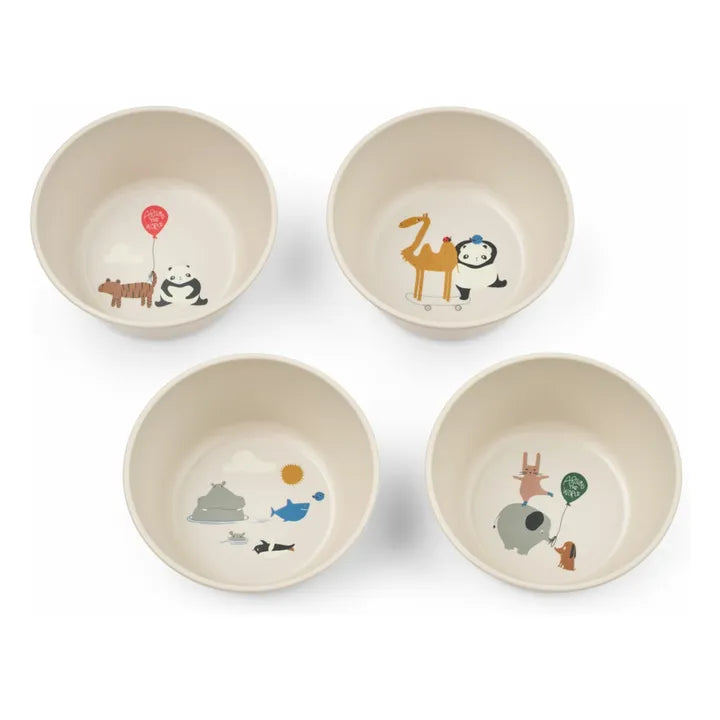 • Set of children's bowls, designed for everyday use, picnics, birthday parties, and other special occasions. Crafted from 75% recycled PET, they are lightweight, shatterproof, and feature signature prints, making each cup a favourite.