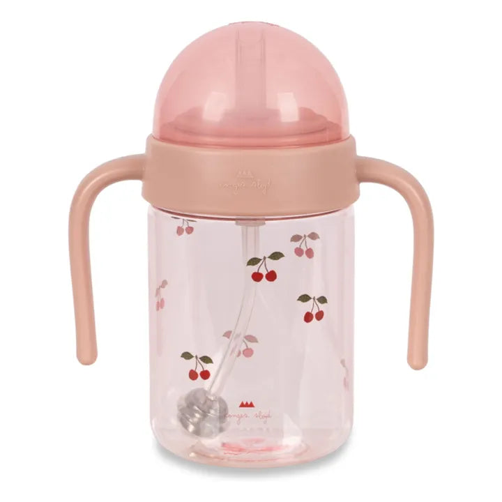 - Practical bottle designed for little hands with easy grip handles and straw function.