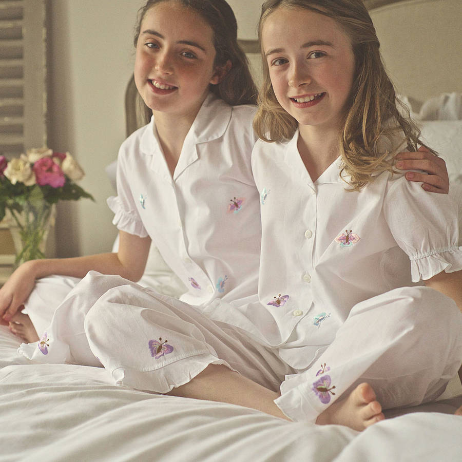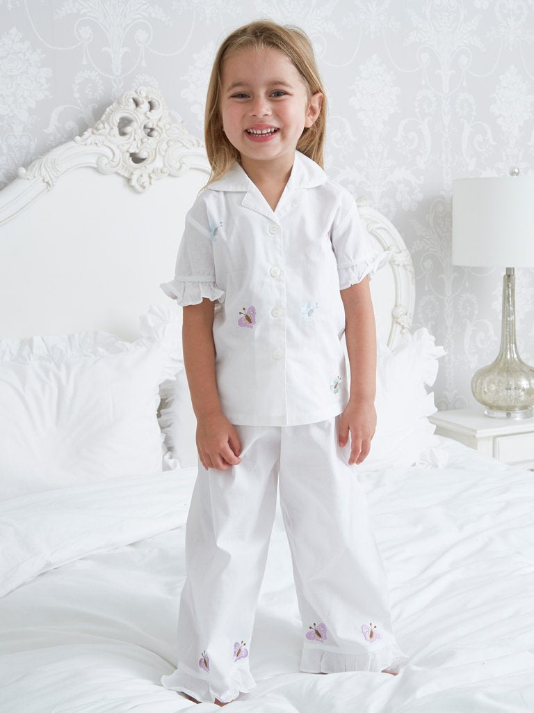 Butterfly White Cotton Ruffle Pyjama