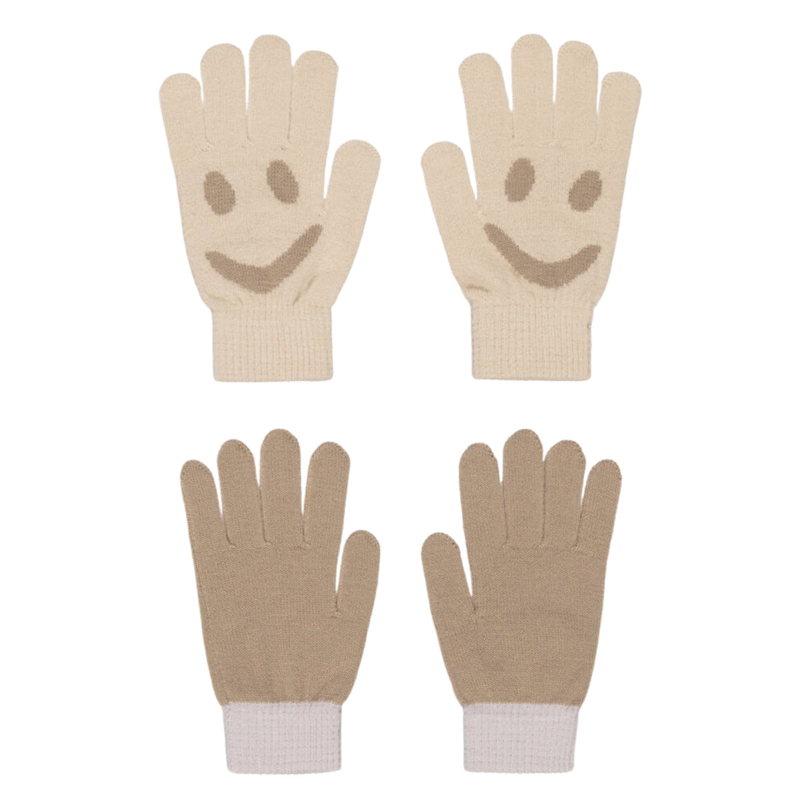 Beige Knitted Smiley Gloves Set