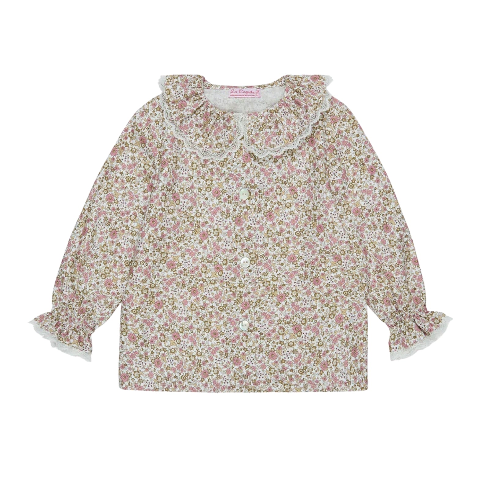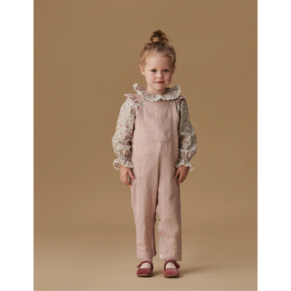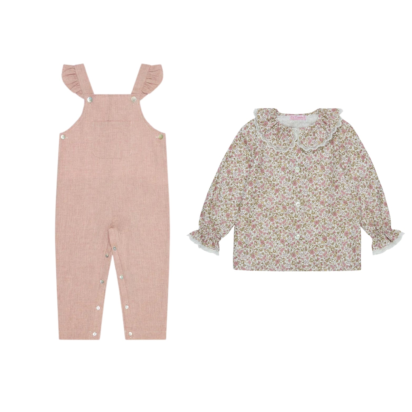 Baby Pink Floral Ruffle Blouse & Dungarees