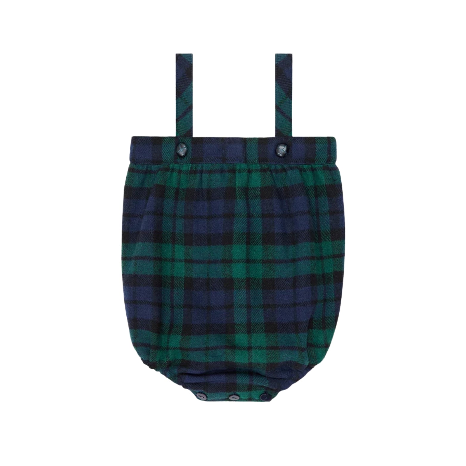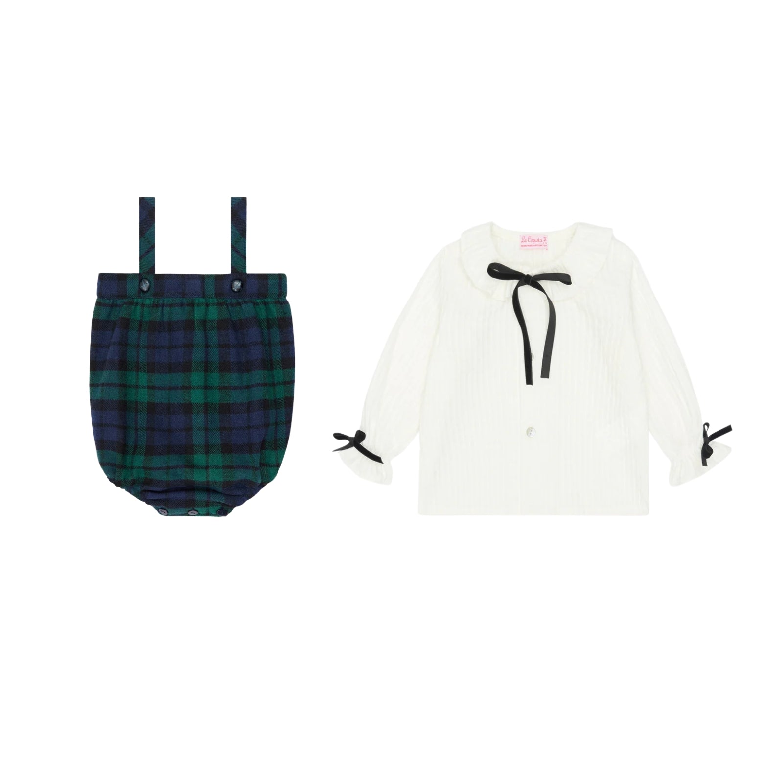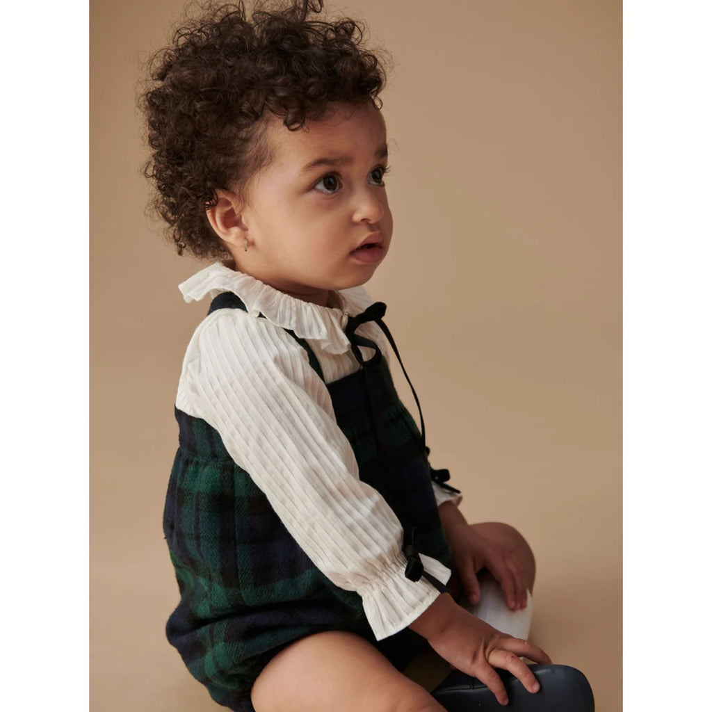 Baby White Betty Long Sleeve Shirt & Green Tartan Romper Dungarees