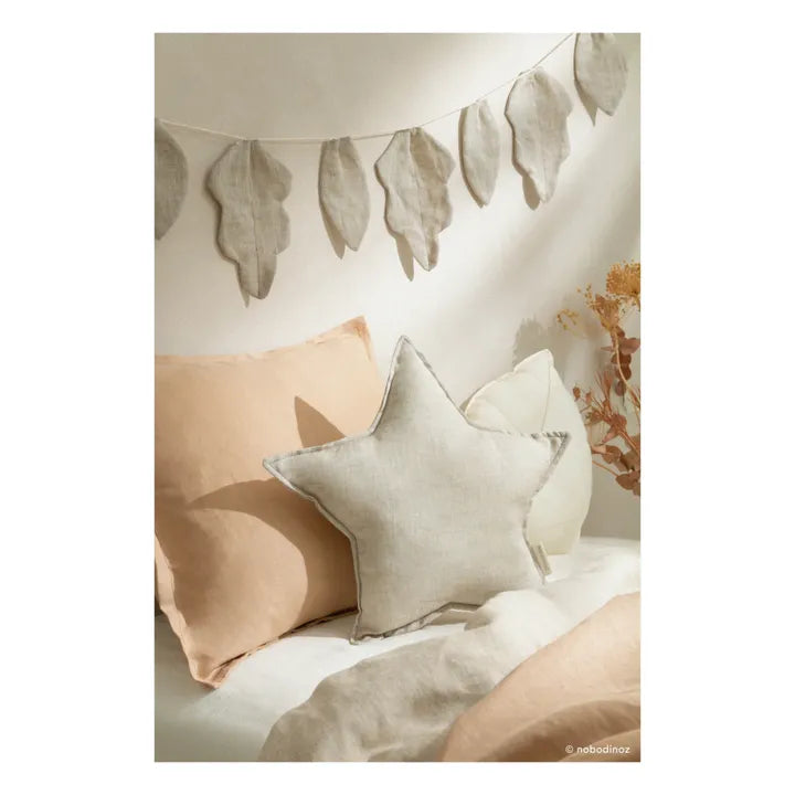 - The French linen star cushion brings a touch of magic to your decor. A must-have for children's bedrooms. Dimensions: 38 x 38 cm