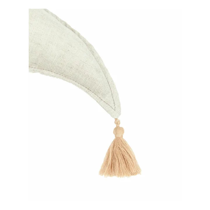 • The Nobodinoz Lune cushion in French linen from the L1N0 collection brings a touch of magic to your decor. It's a must-have for children's bedrooms. We love its delicate pompom. The Nobodinoz L1N0 collection embodies the perfect symbiosis of tradition, innovation, design and sustainability, offering home and family accessories that are both beautiful and meaningful. This collection in French linen symbolizes the excellence of a resolutely optimistic and forward-looking savoir-faire: linen, an environmentally-friendly material par excellence, requires little irrigation or phytosanitary products. Nobodinoz linen is grown and spun in France, and woven, finished and made in our workshops in Barcelona - Dimensions: 36 x 32 cm - French linen from long, unblended fibers: strong and supple - Linen soft to the touch, perfectly suited to babies' skin - Short circuit: linen grown and spun in France, woven and finished in Barcelona, made in the Nobodinoz workshops in Barcelona.