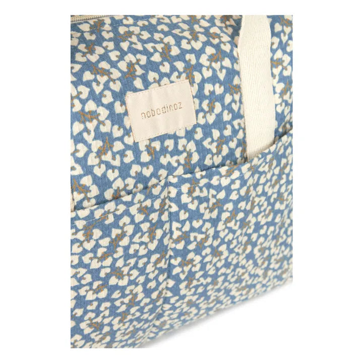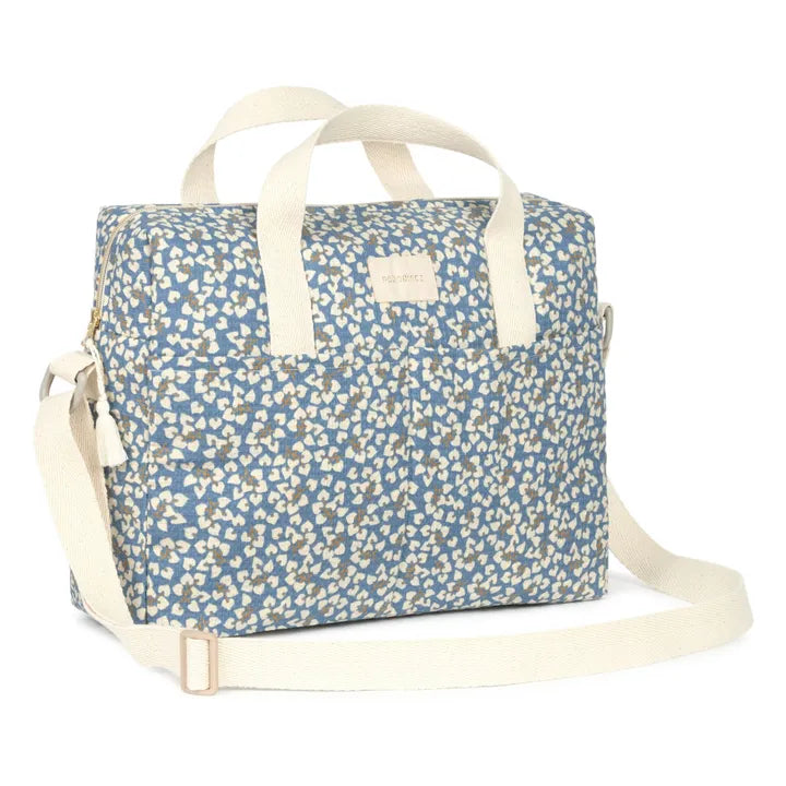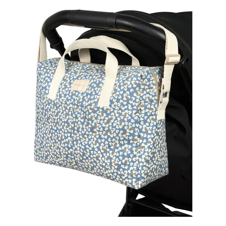 - The Gala bag in organic cotton is the perfect size to attach to your stroller. It's the perfect bag for your daily family outings. Its waterproof interior with two pockets is perfect for storing all your baby's essentials. You can also slip in the two outside pockets for those little details you like to keep close at hand. Thanks to its double handles in cotton braid, you can carry it by hand, on your shoulder or even hang it on your stroller for greater freedom. Our 100% organic cotton honeycomb is refined, elegant and resistant, ideal for maternity items. The exclusive honeycomb design was created in collaboration with our Barcelona weavers - Dimensions: 35 x 27 x 14 cm - Organic cotton honeycomb with waterproof lining - 2 inside pockets, 2 outside pockets - Zipper closure - Organic cotton braid handles - Produced on a short circuit in Barcelona.