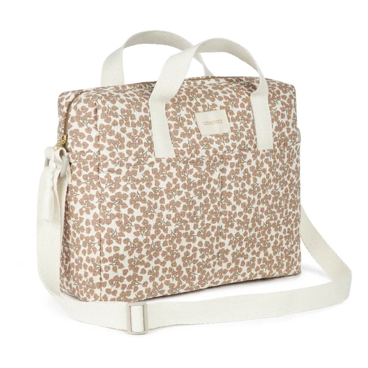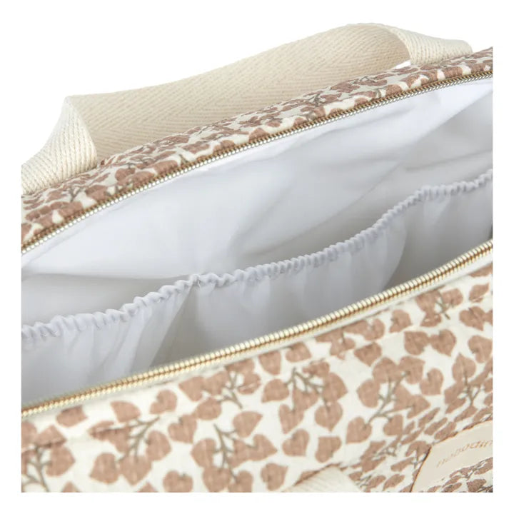 - The Gala bag in organic cotton is the perfect size to attach to your stroller. It's the perfect bag for your daily family outings. Its waterproof interior with two pockets is perfect for storing all your baby's essentials. You can also slip in the two outside pockets for those little details you like to keep close at hand. Thanks to its double handles in cotton braid, you can carry it by hand, on your shoulder or even hang it on your stroller for greater freedom. Our 100% organic cotton honeycomb is refined, elegant and resistant, ideal for maternity items. The exclusive honeycomb design was created in collaboration with our Barcelona weavers - Dimensions: 35 x 27 x 14 cm - Organic cotton honeycomb with waterproof lining - 2 inside pockets, 2 outside pockets - Zipper closure - Organic cotton braid handles - Produced on a short circuit in Barcelona.