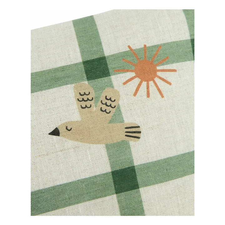 Oiseau Vibes Rectangular Cushion - French Linen | Green