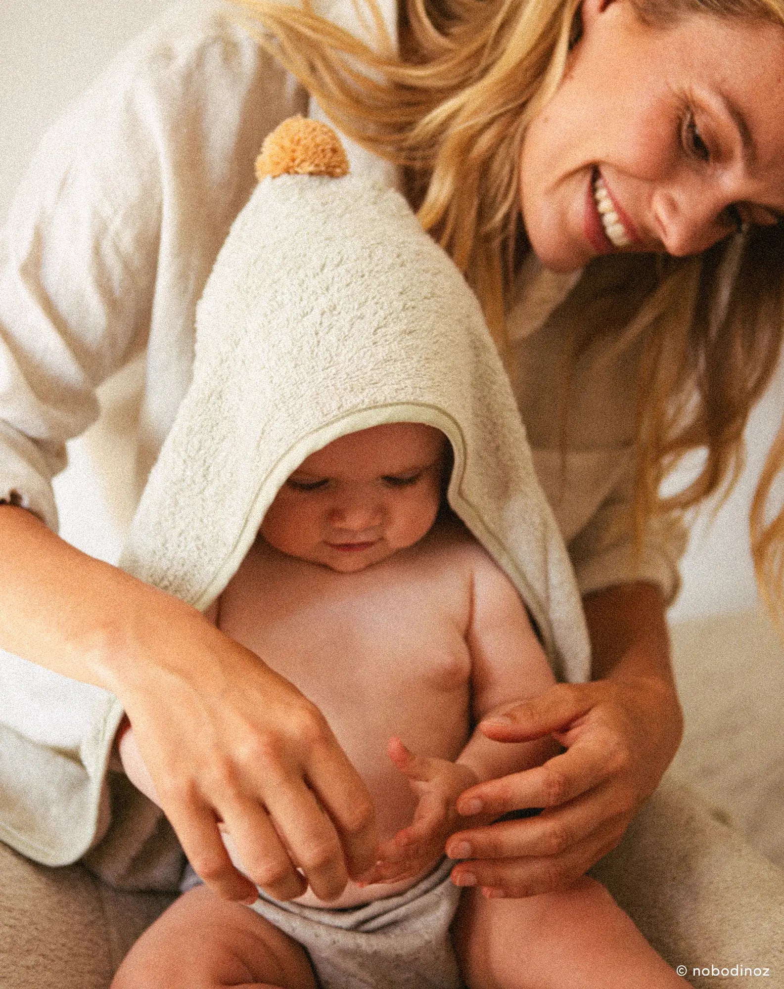 • Pamper your baby after bath time with this organic cotton bath cape. Extra-soft, absorbent and comfortable, the So Cute baby bath cape is a must-have for dressing baby in style after his bath - Dimensions: 73 x 73 cm - Organic cotton terry - Hood with elegant pompom - Recommended age: 6-36 months - Produced on a short-run basis in Barcelona.