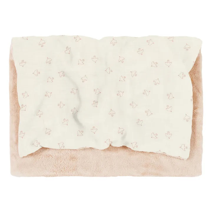 With one side in washed double-muslin and the other in extra-soft faux fur, it's ideal for relaxing or snuggling up in comfort.