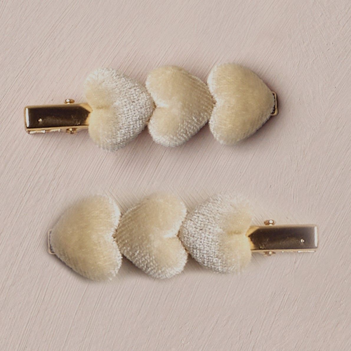 Elevate your style with our sweet Velvet Heart Clips, each secured with a rose gold alligator clip for easy and comfortable wear. Featuring our 'ecru' hue. Care: Spot clean only. Made of 100% polyamide.