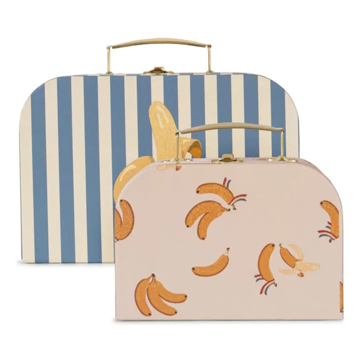 - Set of two cardboard play suitcases with a metal handle. The smaller suitcase fits into the larger one. A perfect place to store little treasures.