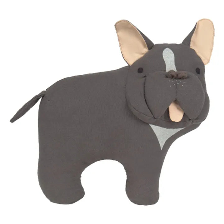 • Meet Jimmy! Your ideal companion. This fun, handmade cushion is shaped like a real French bulldog, made from soft cotton with a light gray print. He has pointy, erect ears, a drawn tongue and a cord nose, just like a real French bulldog! A playful, adorable cushion that will bring a smile to any space.