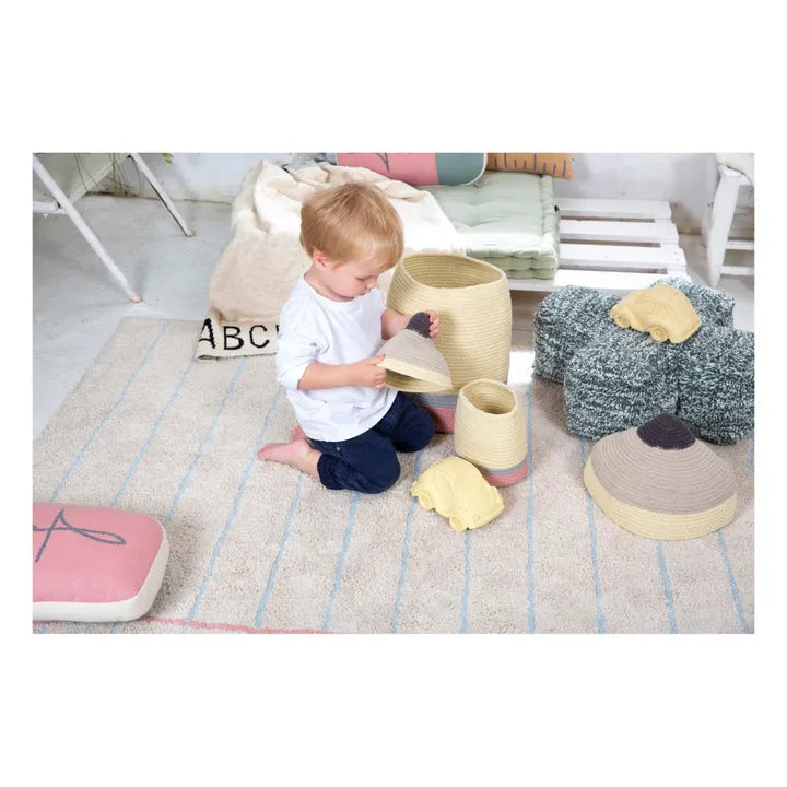 • Cotton basket with lid made of braided cord in different colours, shaped as a classic pencil. A place for everything, and everything in its place! A pencil is the most essential of school stationery items, so turning it into a basket made perfect sense to Lorena to complete the Back to School collection. Now kids have the perfect storage basket for keeping school supplies, from colored pencils to notebooks or, perhaps, even toys!