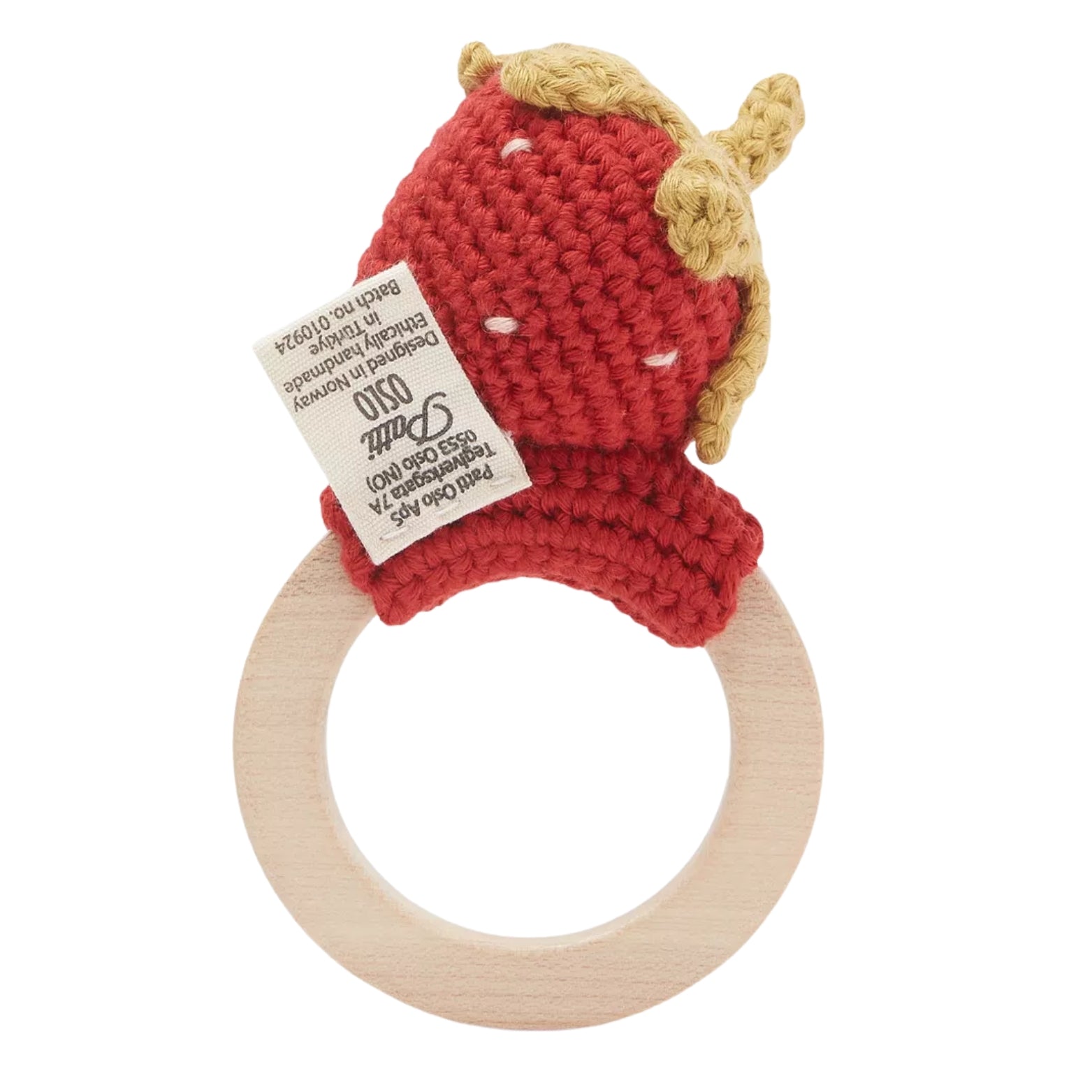 • Made from GOTS-certified organic cotton with a natural maple wood ring, it’s gentle on sore gums and safe for even the most sensitive skin