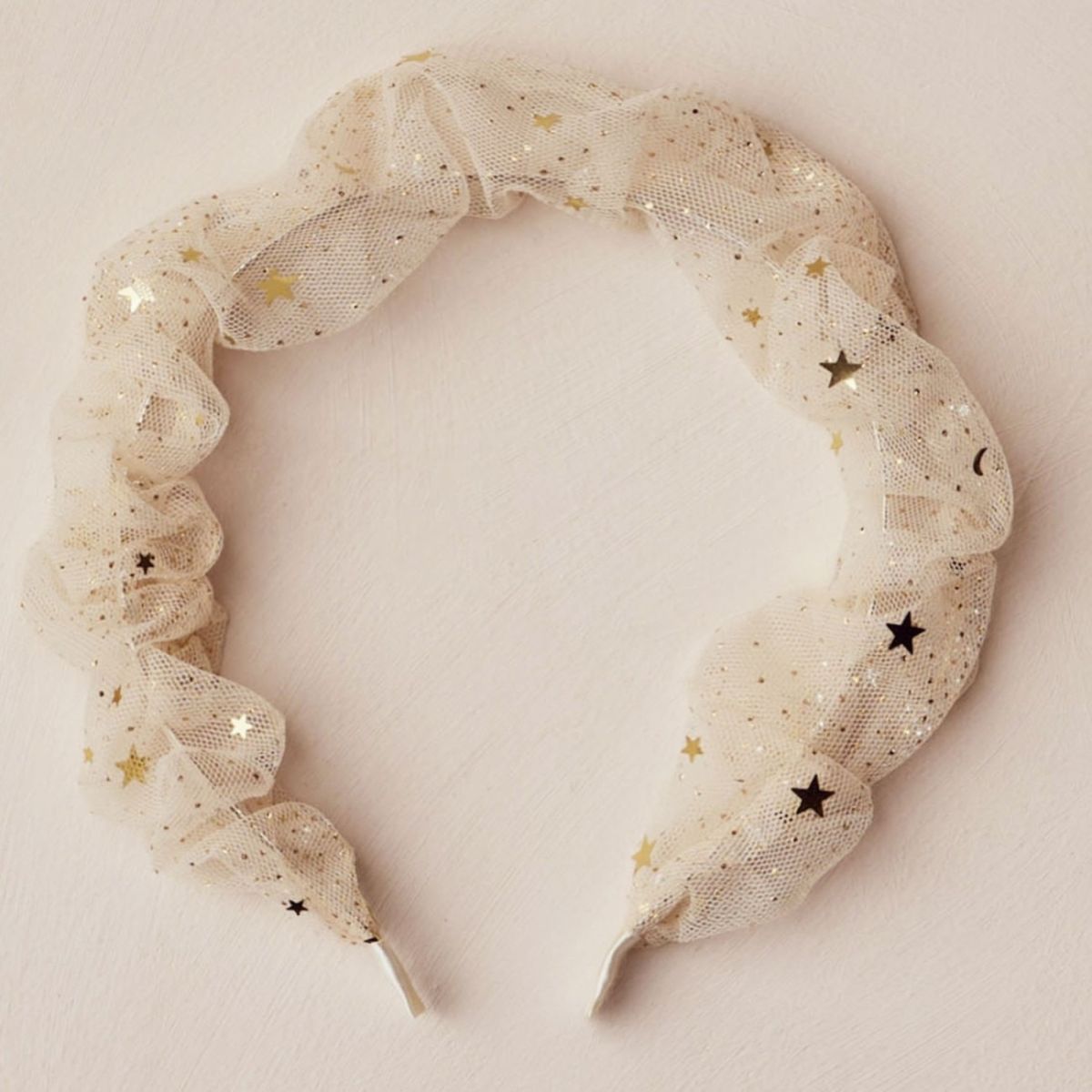 Add a touch of elegance with our Gathered Headband—perfect for completing any special occasion look. Featuring our 'champagne stars' tulle. Care: Spot clean only. Made of 100% polyester.